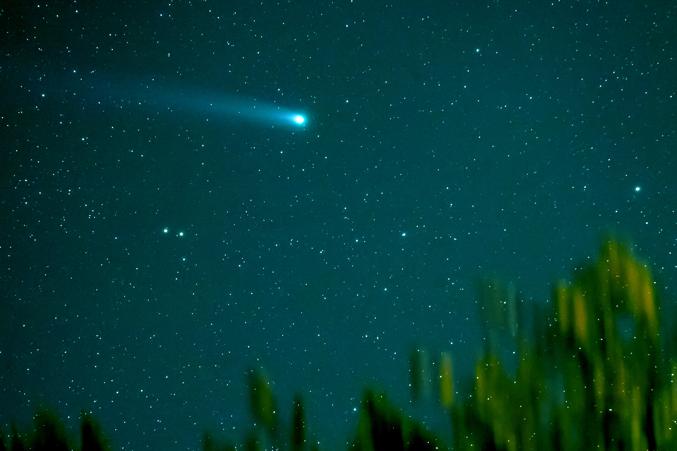 Er bot in den Adventswochen mit seiner türkisgrün strahlenden Koma und dem über 2 Grad langen Schweif über den Tannenwipfeln des nahen Waldes ein eindrückliches Bild.