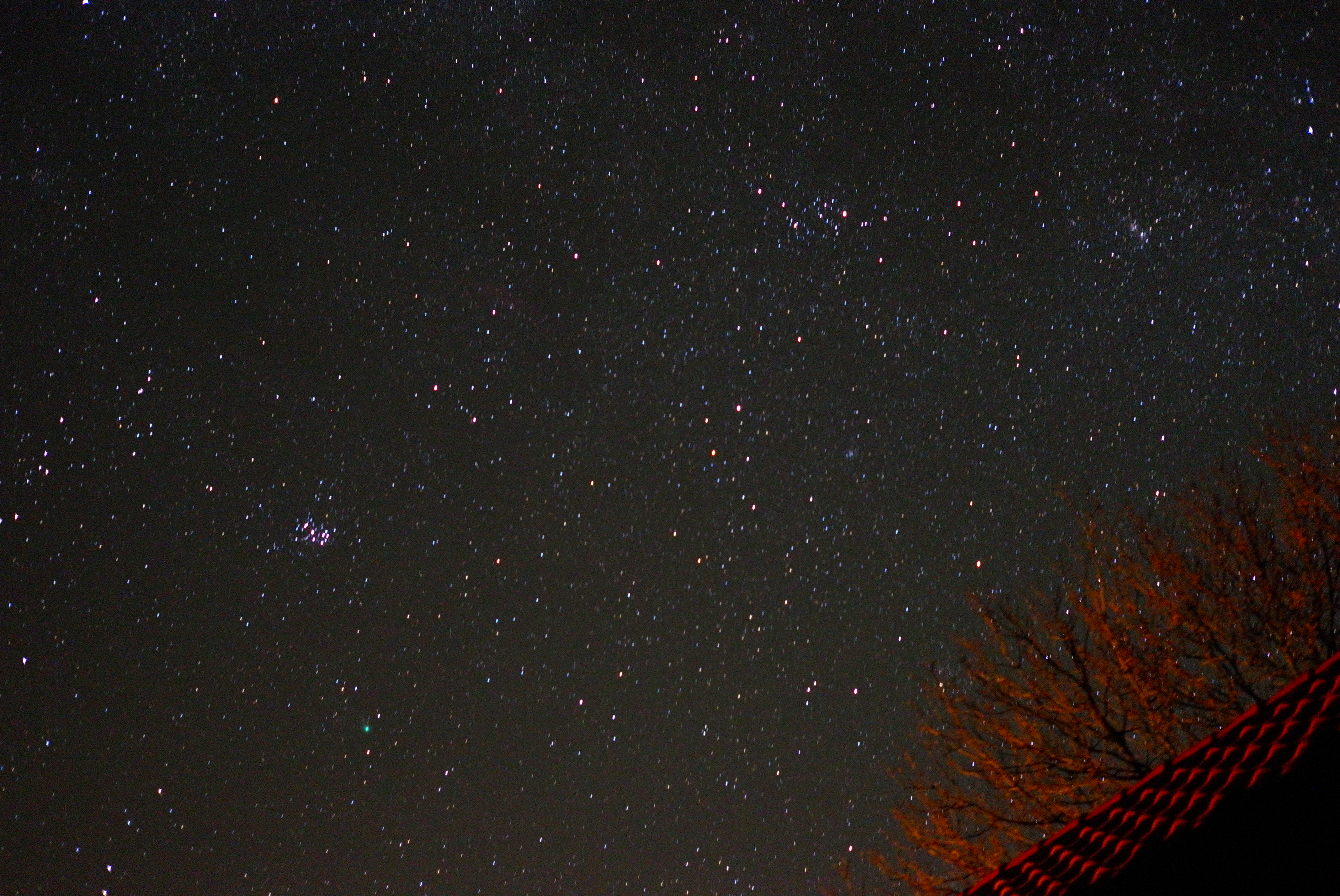 Sichtung des Kometen mit Primitivtechnik Fernglas und Kompaktkamera mit Stativ