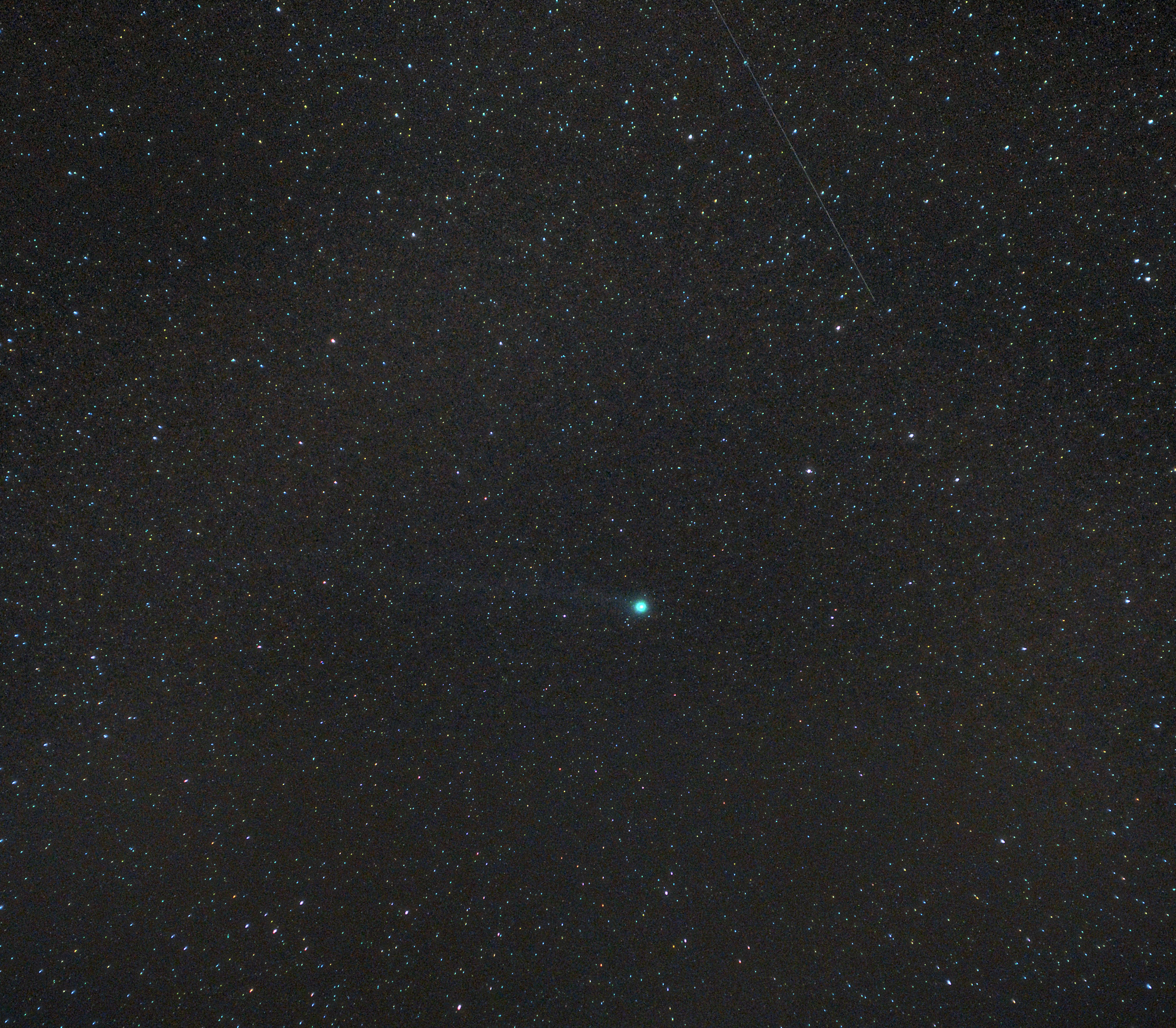 Komet Lovejoy am 20. Januar 2015. Das miserable Seeing mit dauernd anstürmenden Wolkenfetzen ließ nur eine Aufnahme zu.