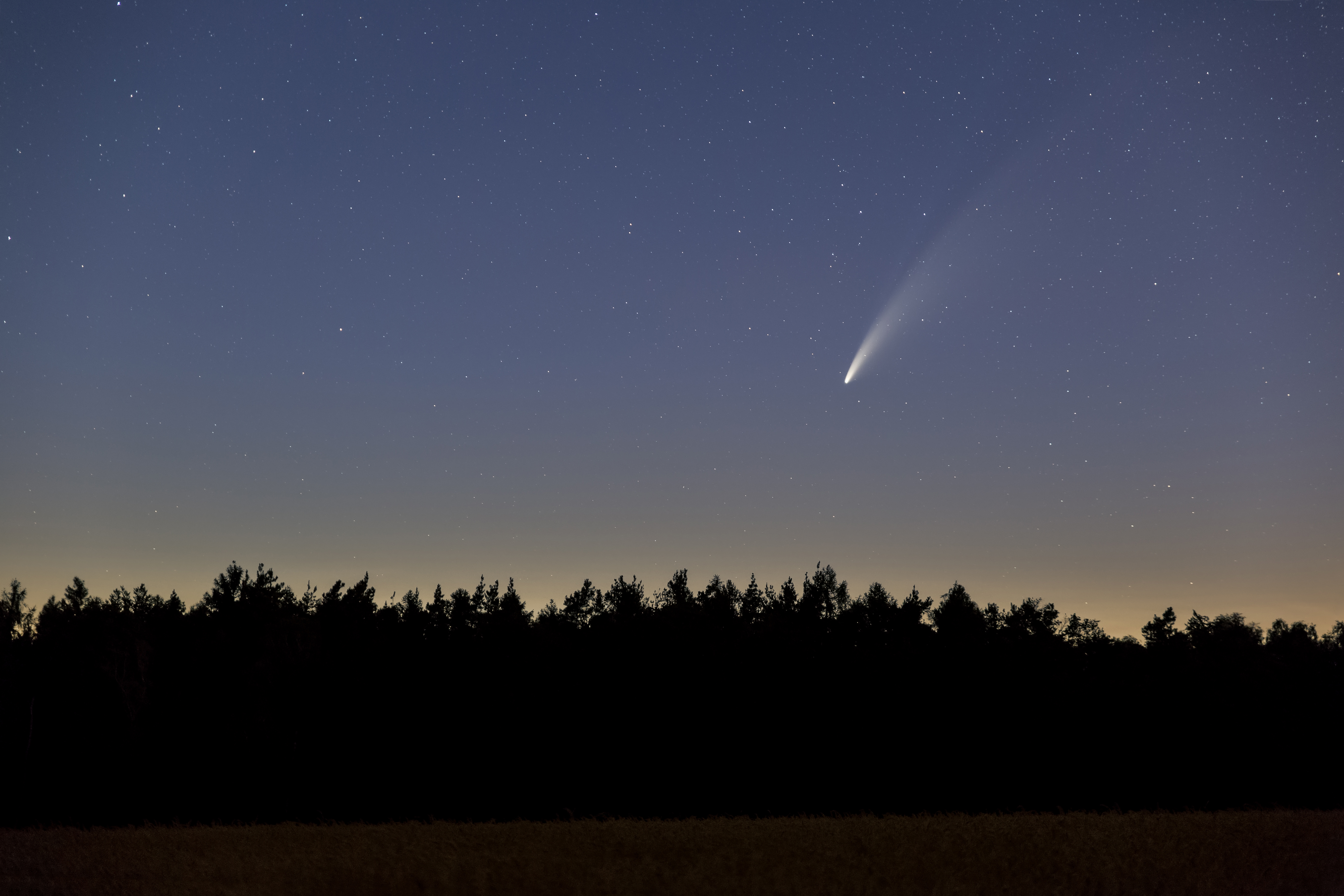 Prachtvoll stand der Komet kurz vor Mitternacht über dem Wald, der sich gleich gegenüber von meinem Grundstück befindet. Wieder ein Grund, die Kamera aus dem Haus zu holen.
