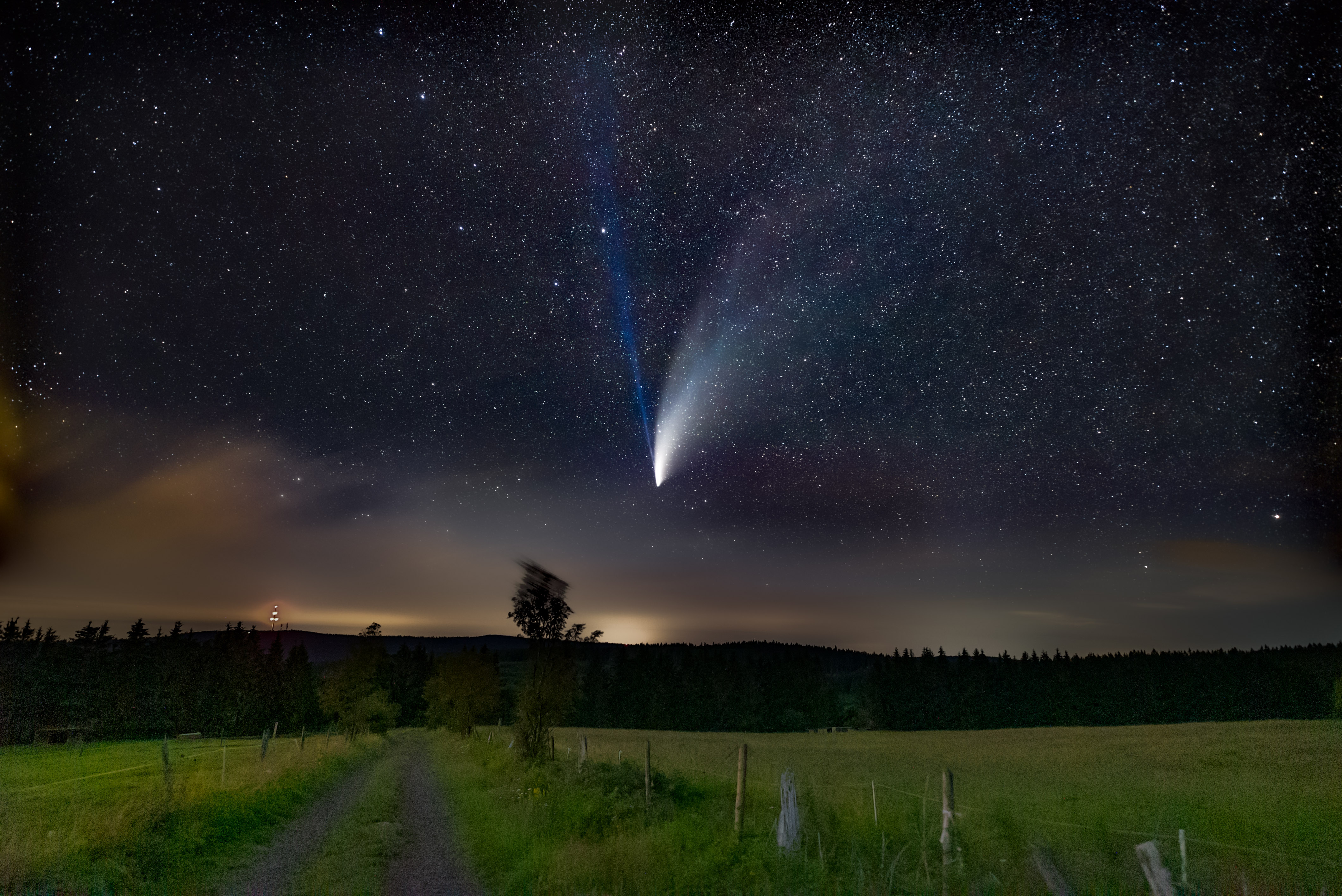 Komet Neowise am 20. Juli 2020 auf der Herchenhainer Höhe aufgenommen.