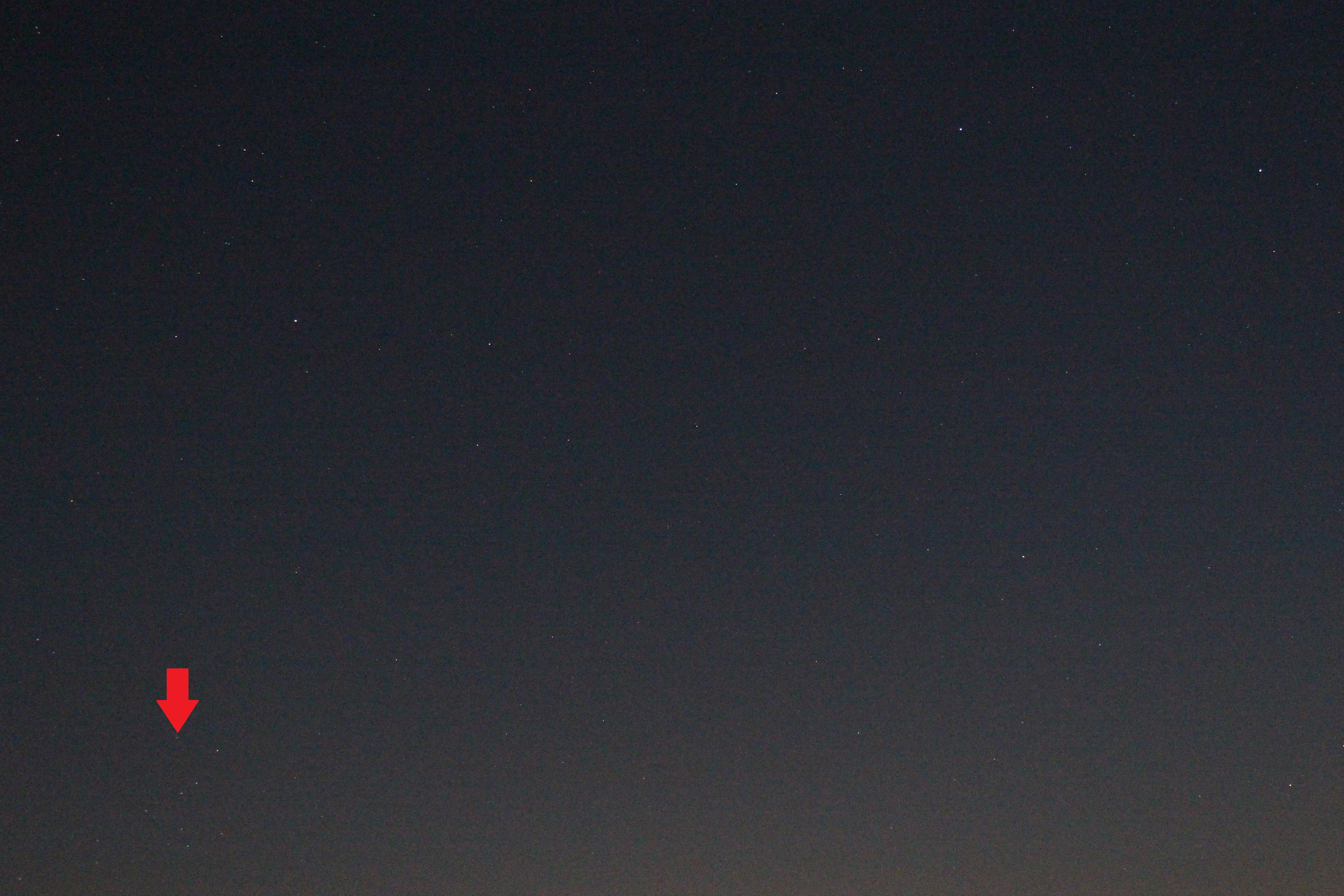 aufgenommen auf einer Wiese zwischen dem Sindelfinger Ortsteil Maichingen und dem Grafenauer Ortsteil Döffingen, Komet Neowise F3 ist mit einem rotem Pfeil markiert.