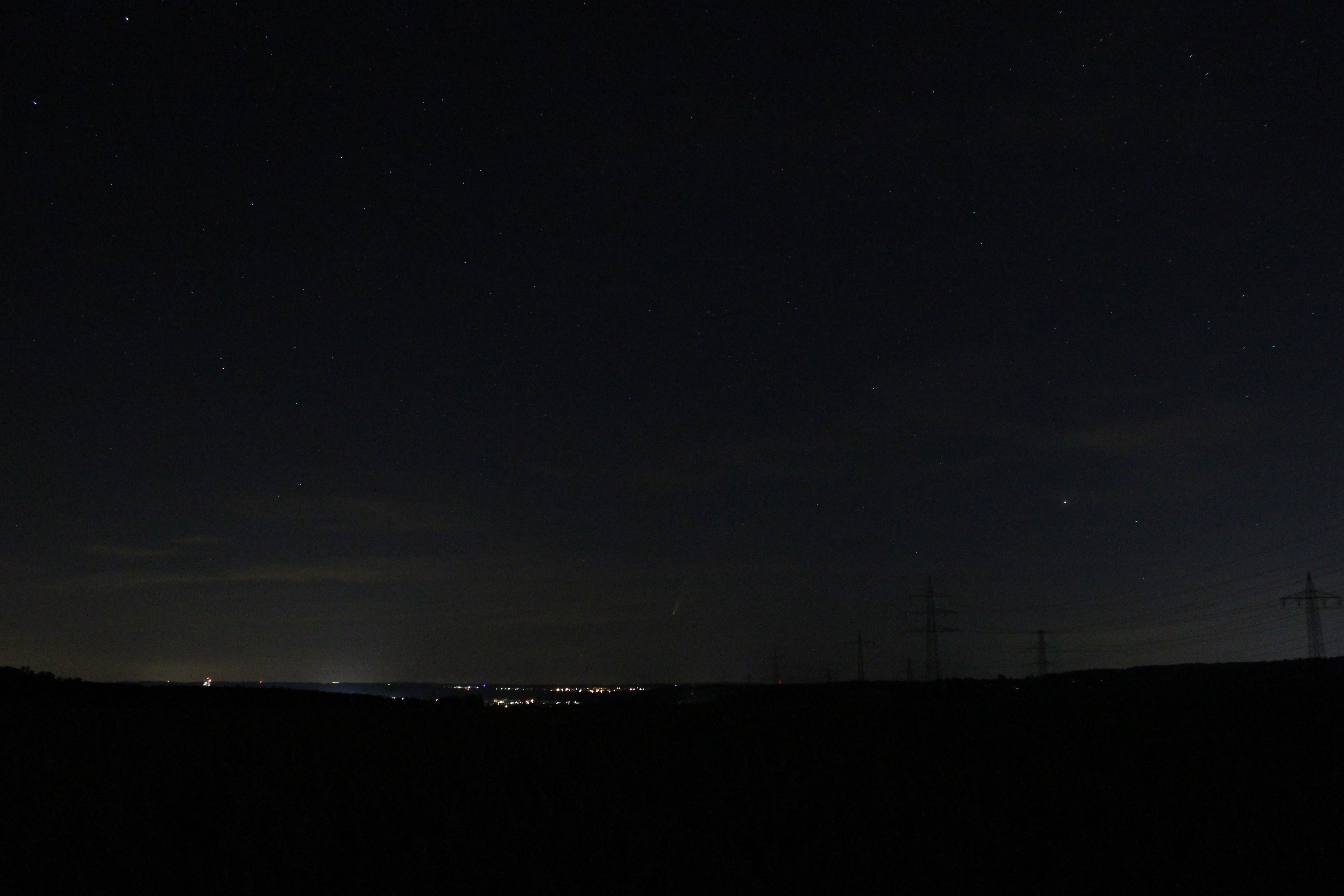 aufgenommen nördlich des Sindelfinger Ortsteils Maichingen, leider beeinträchtigen ein paar Wolken den Blick auf den Kometen.