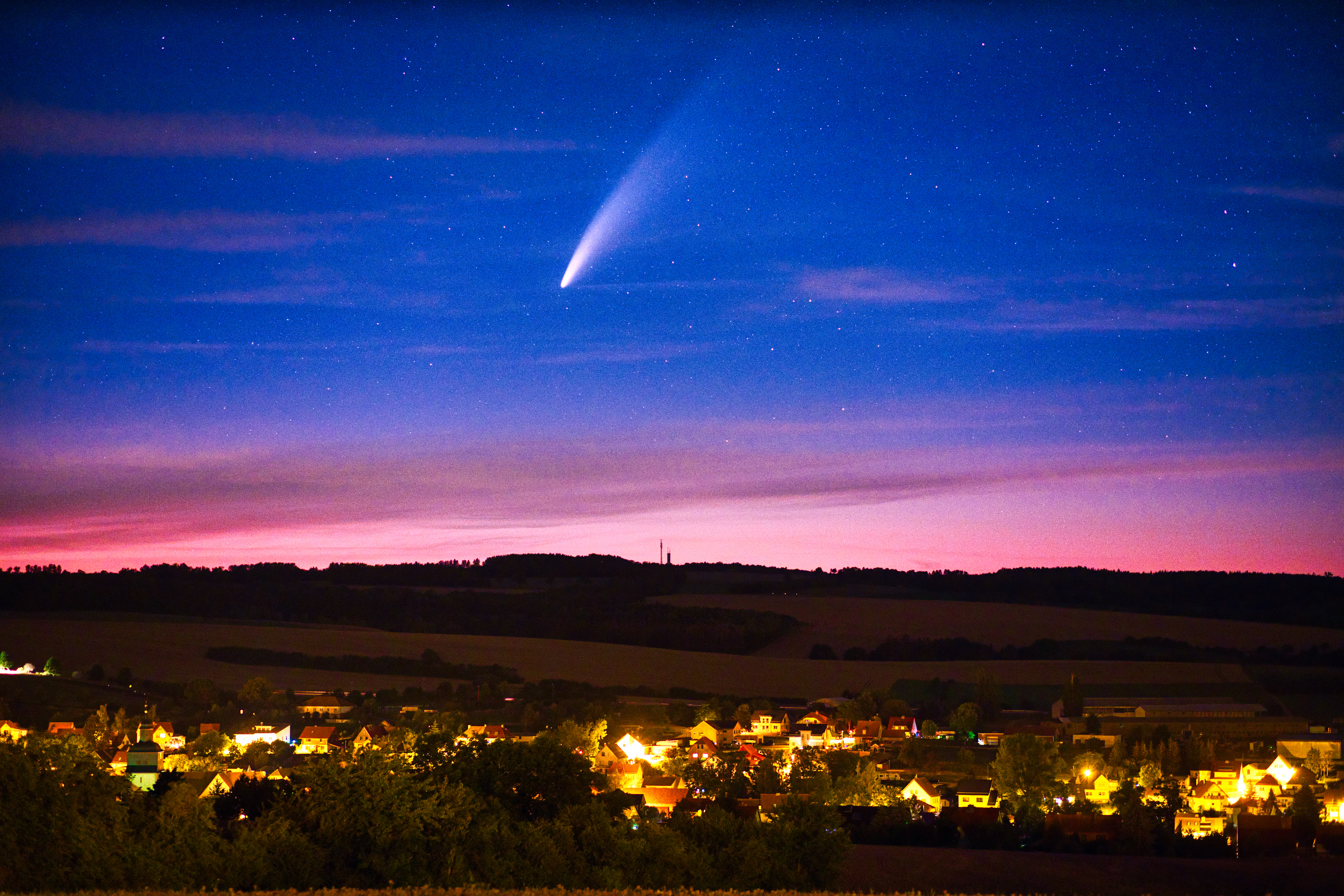 Komet Neowise kurz nach Mitternacht des 13. Juli 2020 über Kefferhausen (Eichsfeld/Thüringen).