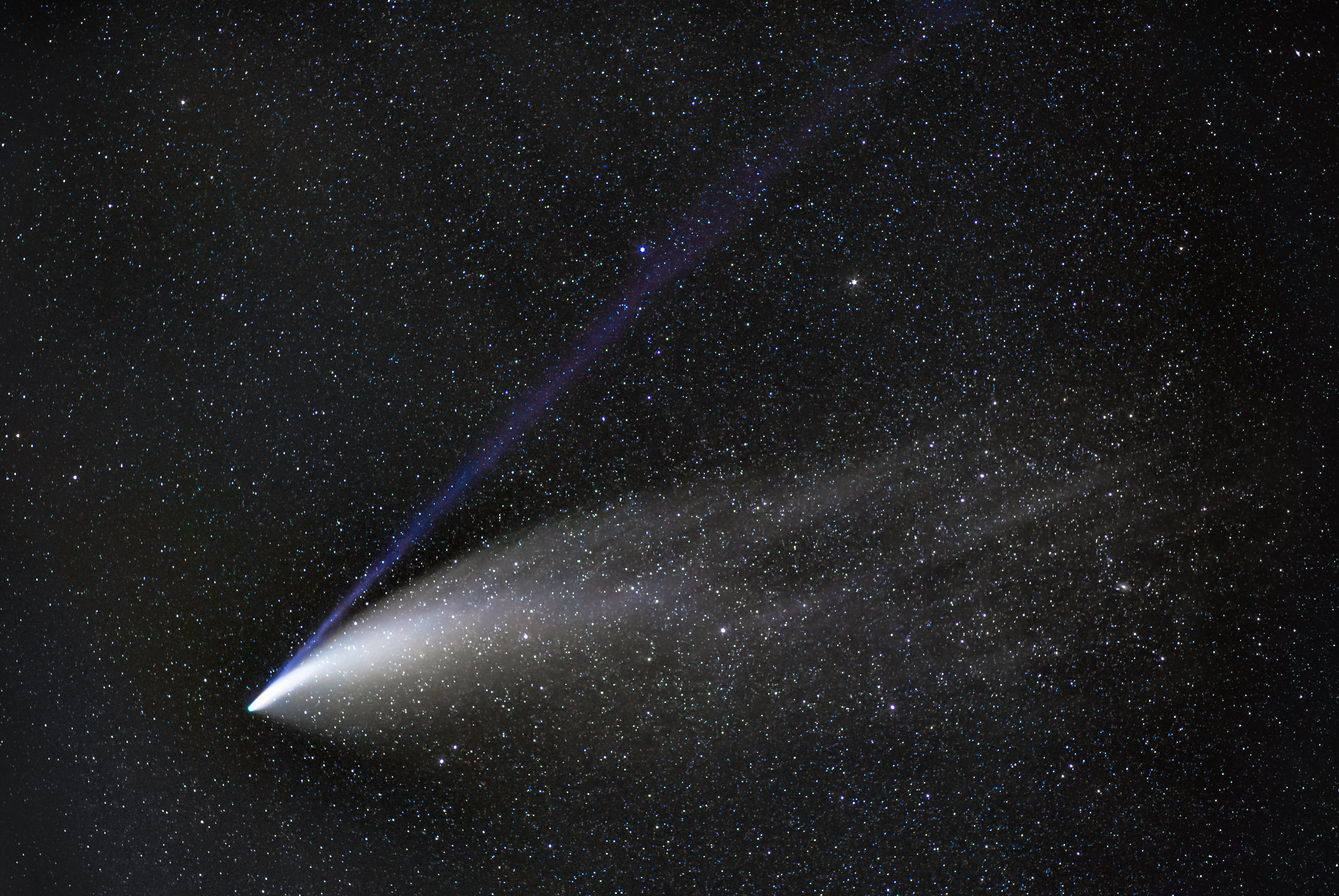 Komet Neowise vom 21. Juli 2020 vom Vogelsberg aus aufgenommen. Aufnahmedaten: Sony A7s, Zeiss Planar 50 mm, Blende 2,8, 110 x 8 sec., ISO 6800, gestackt mit Sequator und bearbeitet mit Photoshop.