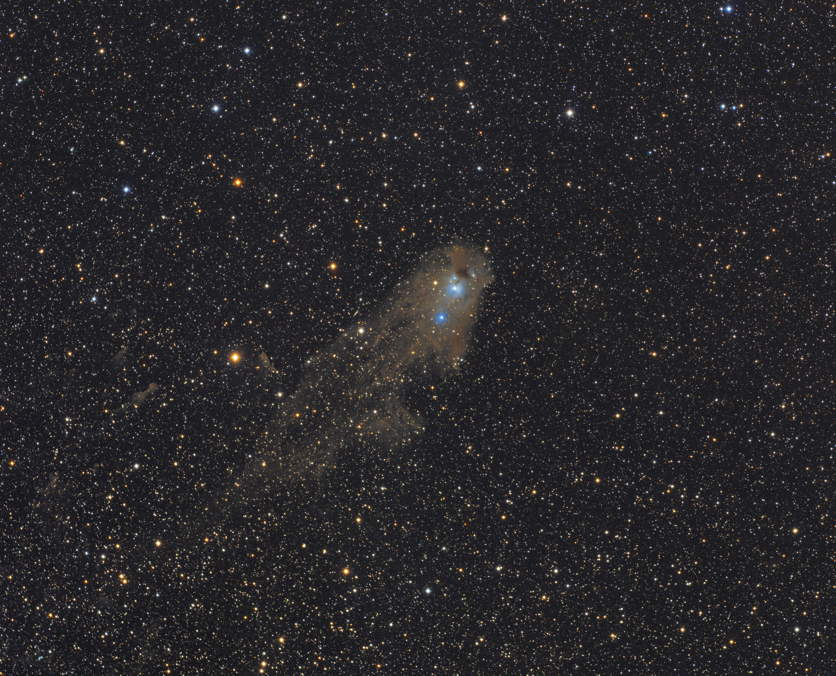 Dieses Objekt im Sternbild Zentaur steht in einem relativ hohen Winkel zur galaktischen Ebene und somit von uns aus betrachtet, recht abseits der hellen Milchstraße. Somit hebt sich dieser Staubkomet (wegen seiner Erscheinungsform kometar genannt) schön vom dunklen Himmelshintergrund ab. Es handelt sich um ein Sternentstehungsgebiet und man erkennt schön, wie sich junge Sterne den Weg aus der Globule bahnen und ihr blaues Licht am Staub der Wolke reflektiert und gestreut wird.