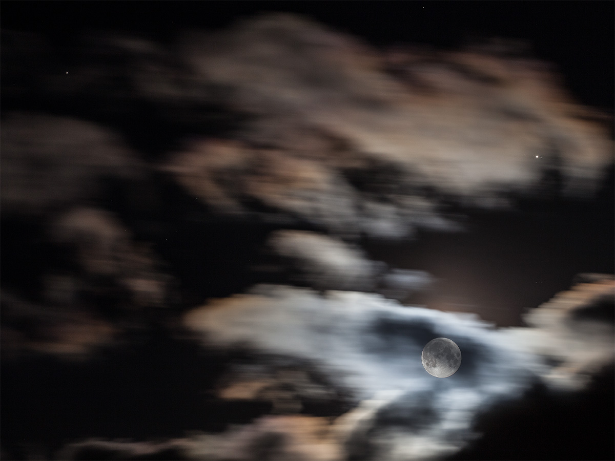 Aufnahme mit 400mm/f8 durch schnell ziehende Bewölkung.
