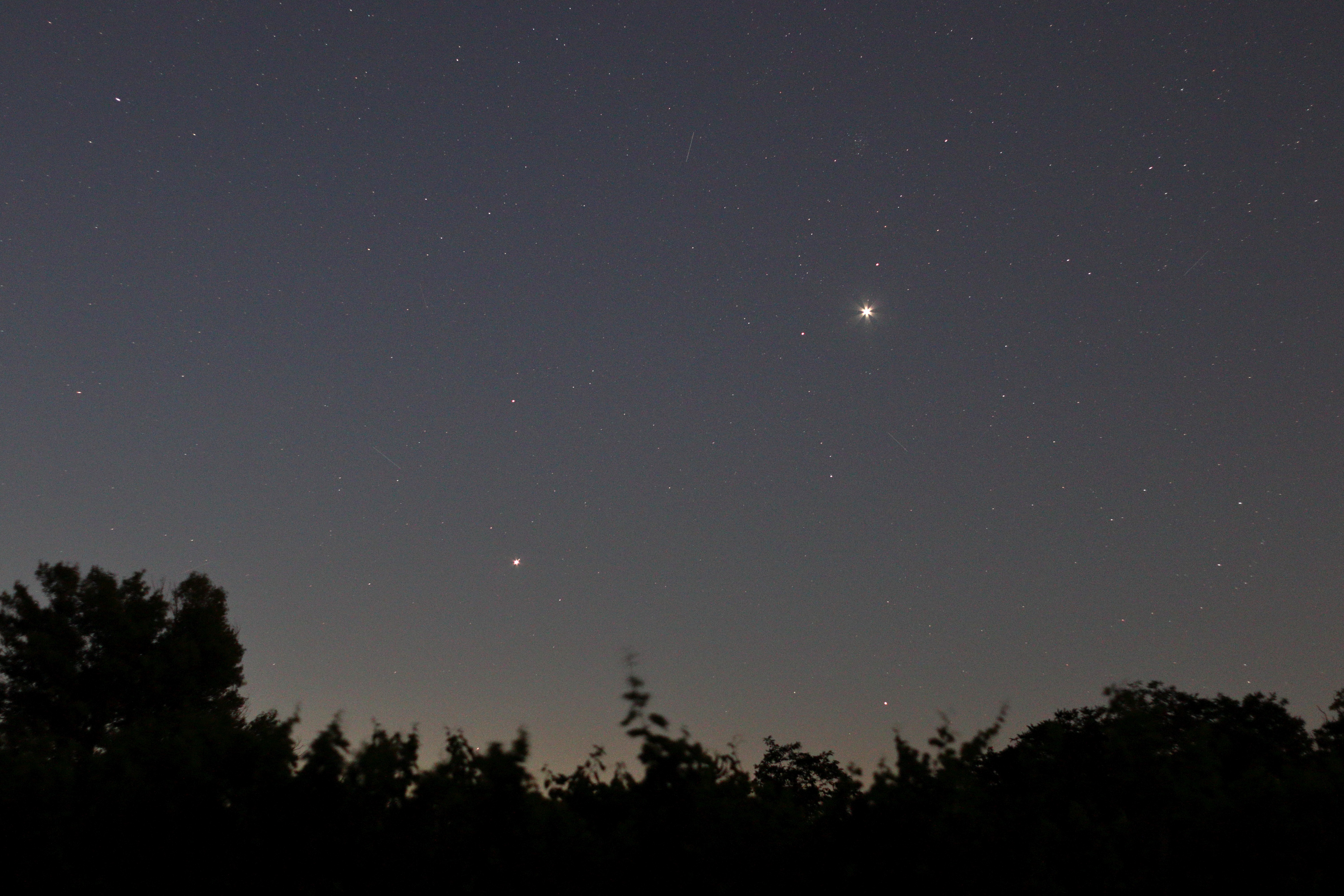 Venus steht noch acht Grad vor Jupiter, den sie am 12. August überholen wird.