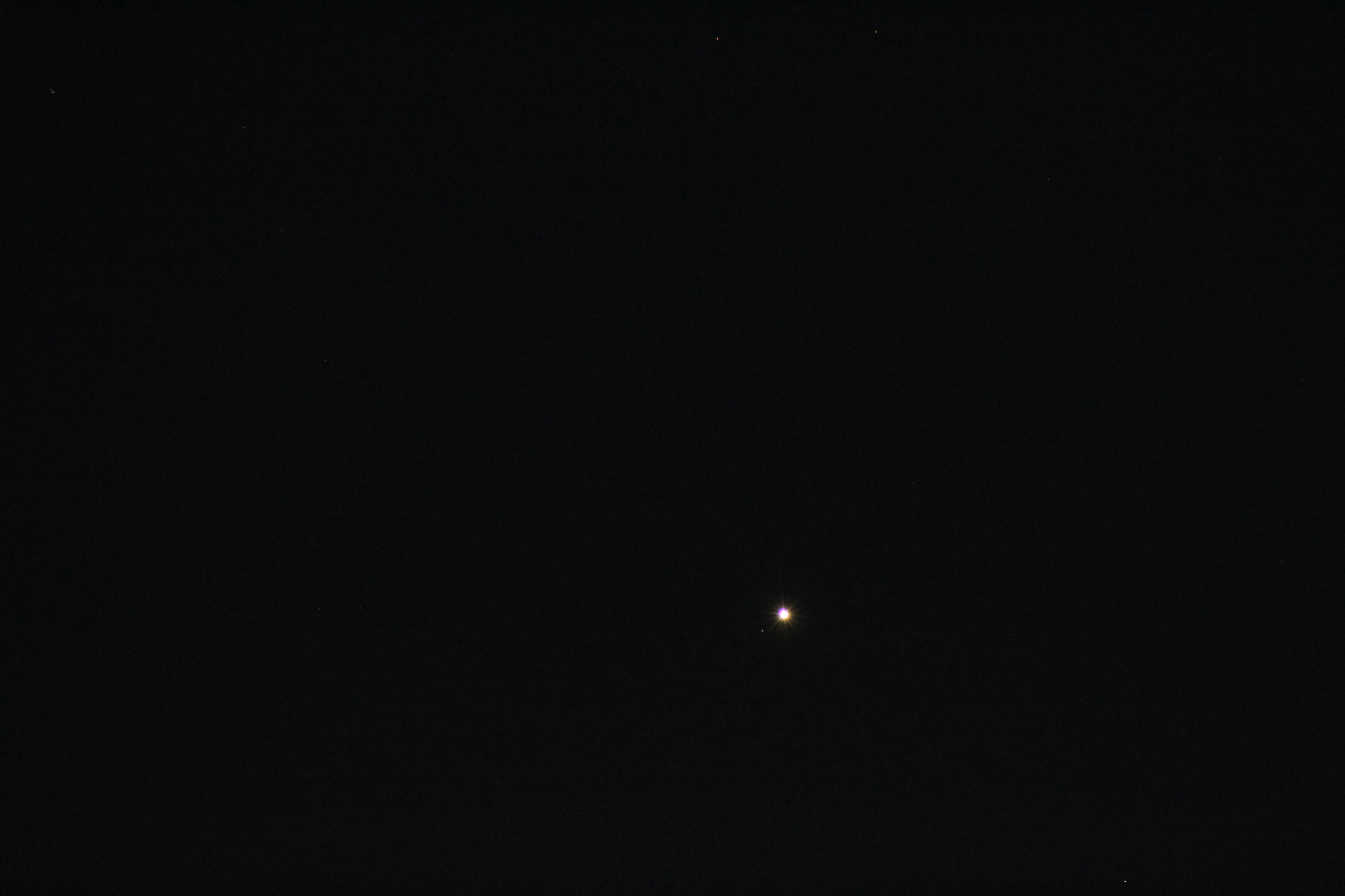 Erst eine Fotografie mit einem Teleobjektiv ermöglicht es, den Planeten Uranus neben der hellen Venus zu fotografieren.