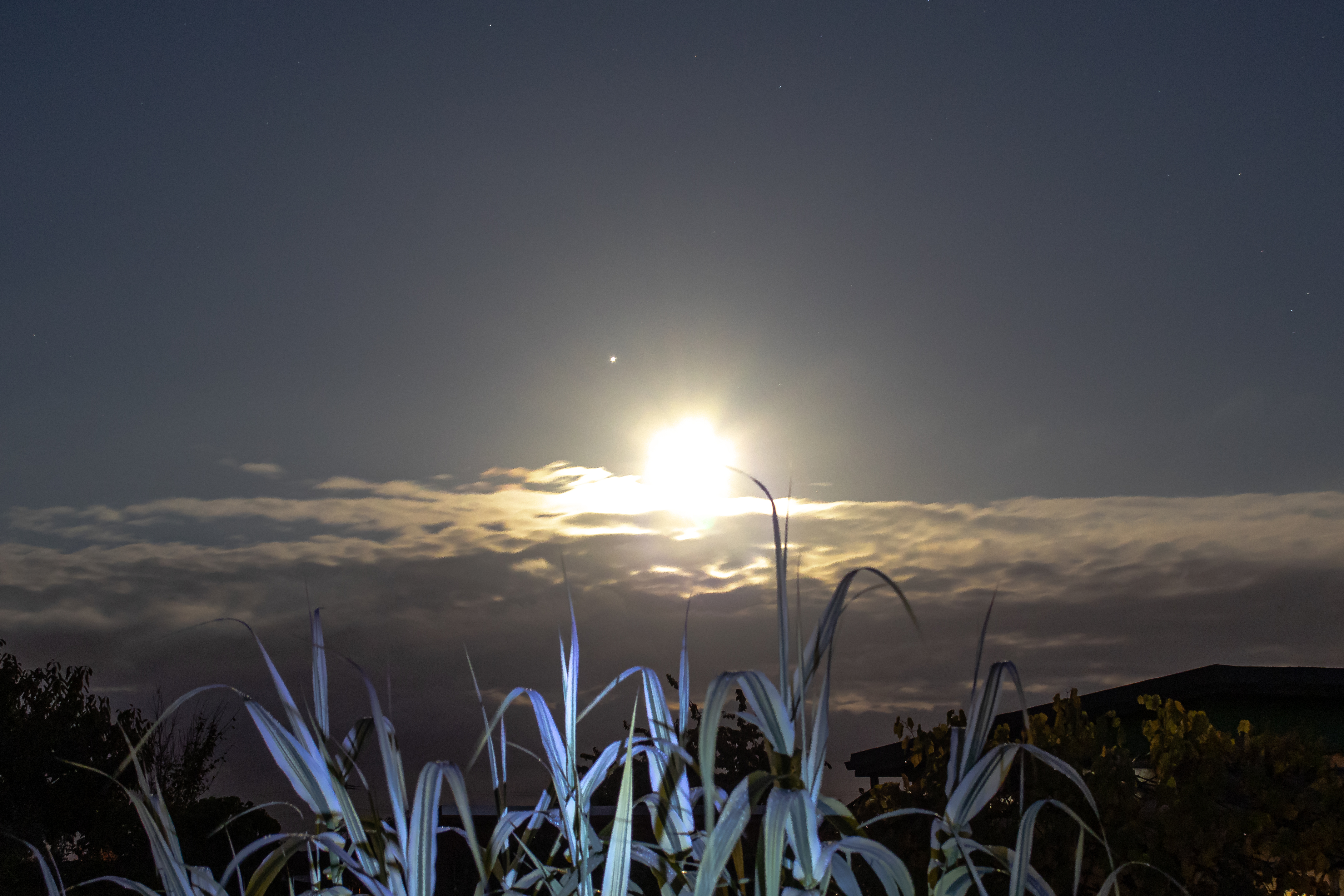 Treffen von Jupiter und Mond kurz nach dem eine kleine Regenfront durchgezogen war.