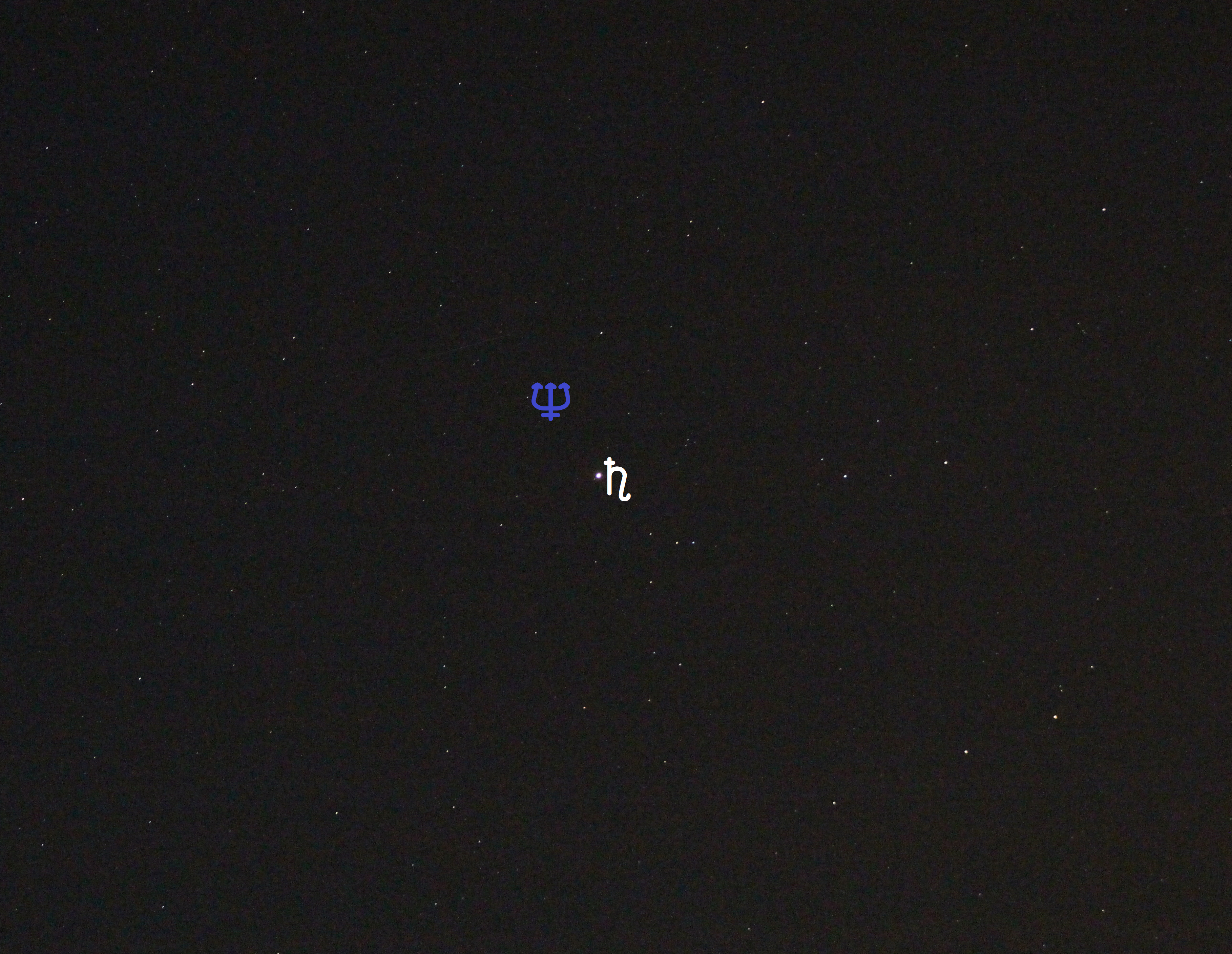 Leserbilder Astronomie: Konjunktion zwischen Saturn und Neptun (Objekte beschriftet)