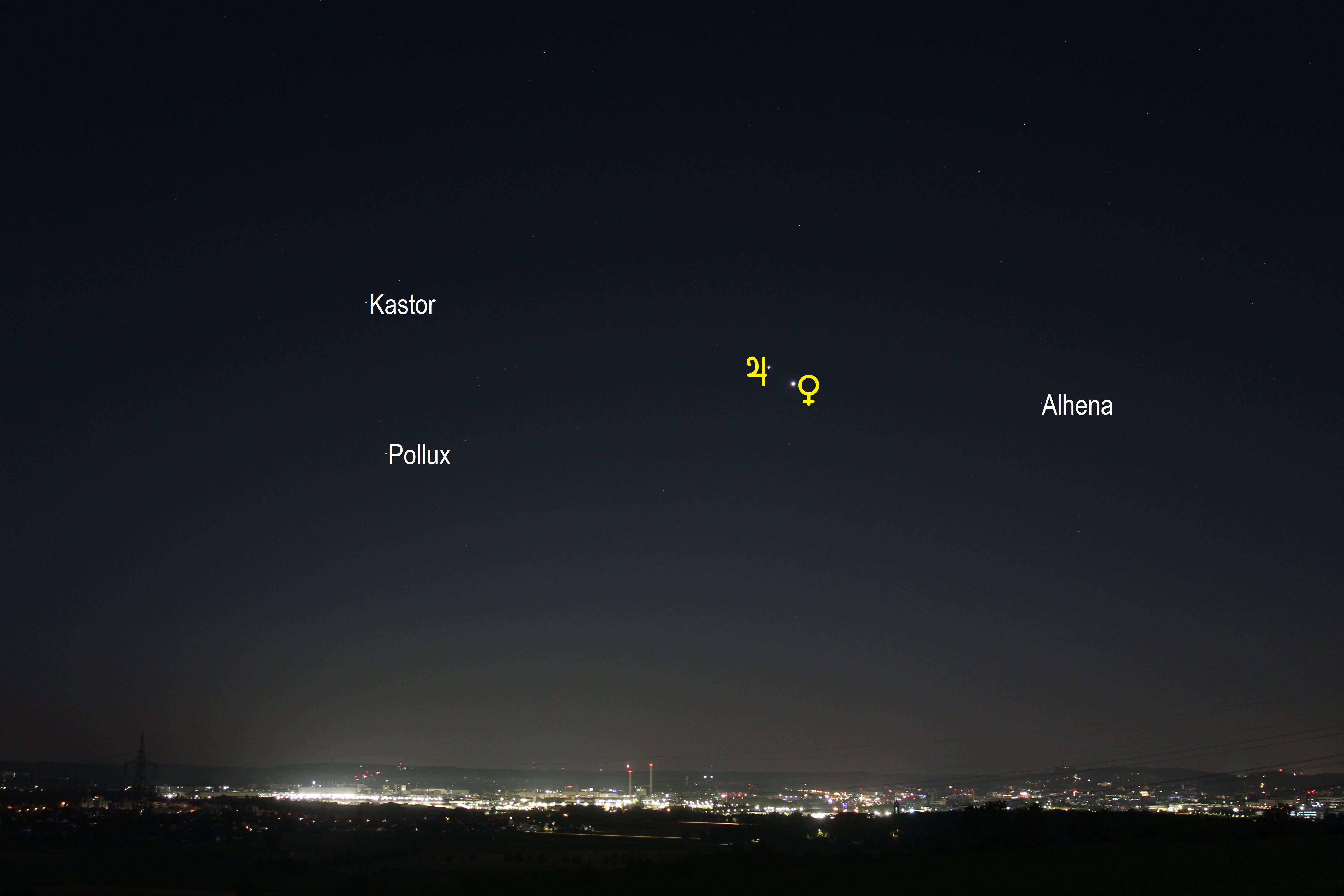 Leserbilder Astronomie: Konjunktion zwischen Venus und Jupiter (Objekte beschriftet)