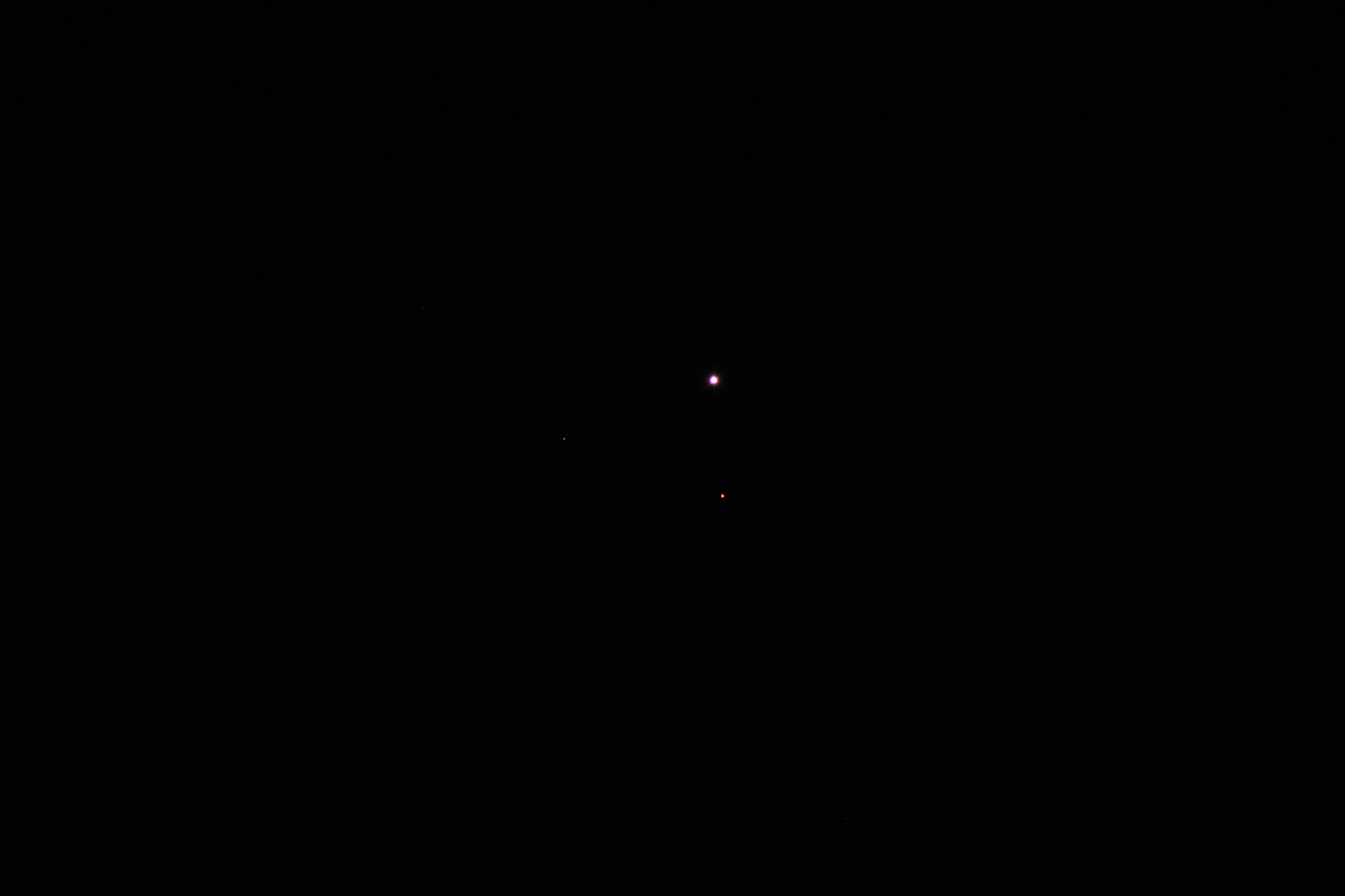 Bei unerwartet klarem Himmel konnte ich vom heimischen Fenster aus die Konjunktion der Planeten Venus und Mars am Morgen des 5. Oktober 2017 fotografieren. Der lichtschwache Mars steht unterhalb der viel helleren Venus steht und verblasst in ihrem Glanz. Ich habe das Ereignis mit drei verschiedenen Brennweiten fotografiert.