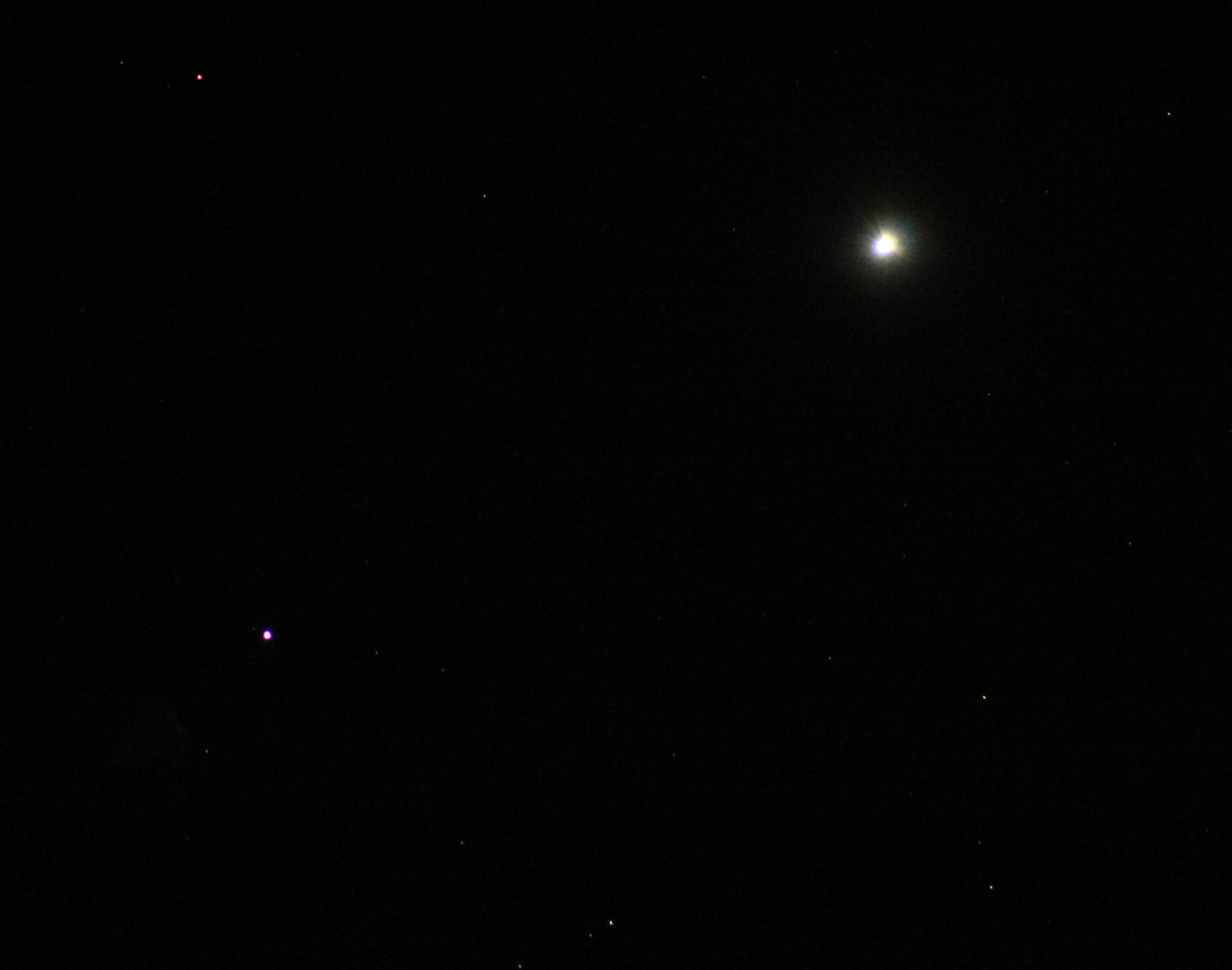 Venus und Saturn in gegenseitiger Konjunktion, aufgenommen westlich von Wollbach mit langer Brennweite.