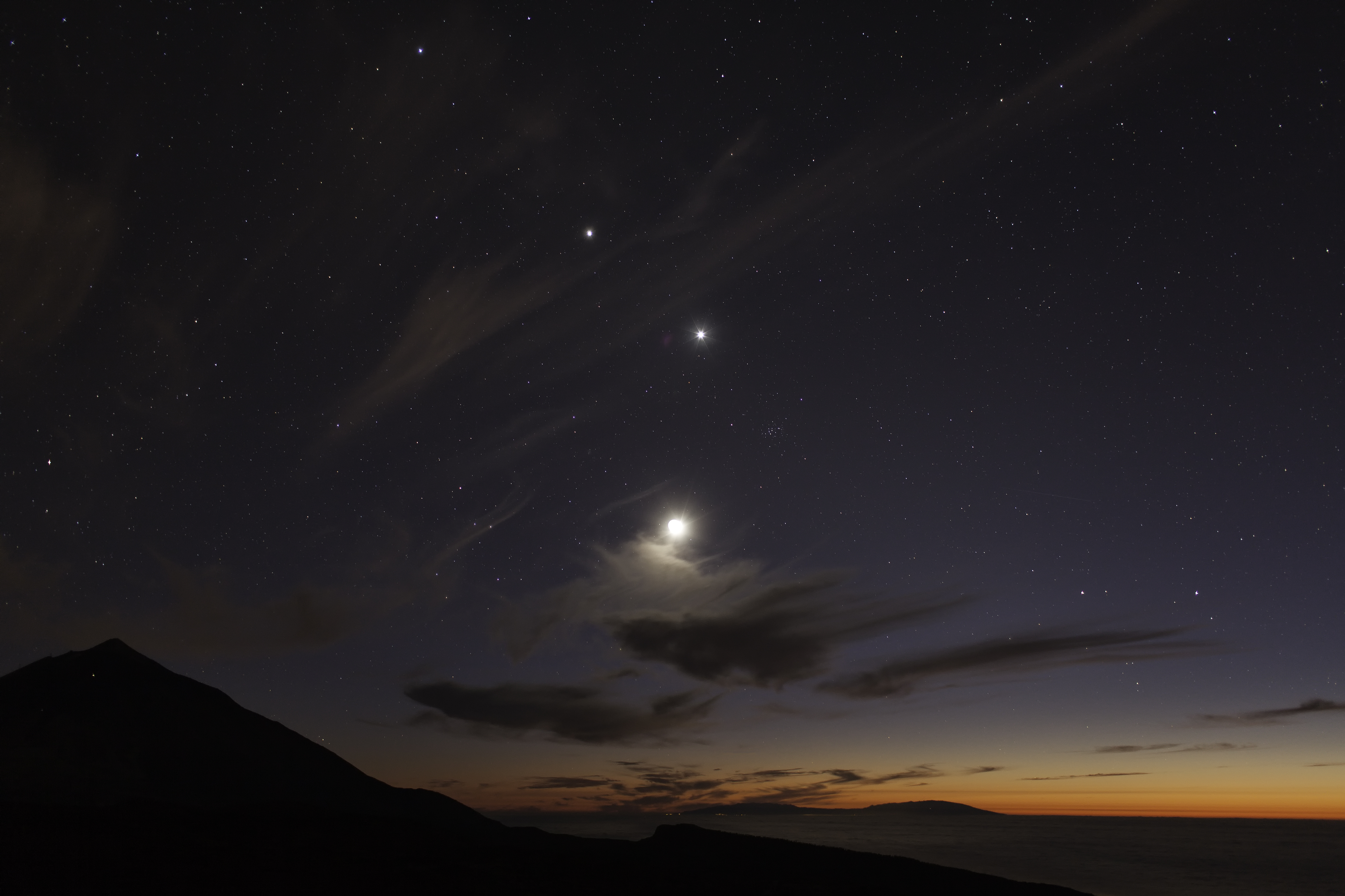 Es wird wärmer, Wolken tauchen auf. Der Mond hat sich den Planeten seit gestern deutlich angenähert.