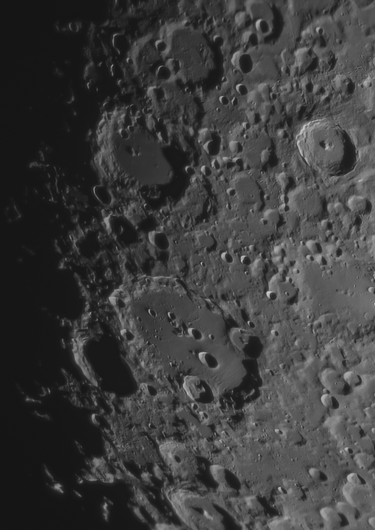 Kleines Panorama des Mondkrater Clavius mit seinen Nebenkratern.