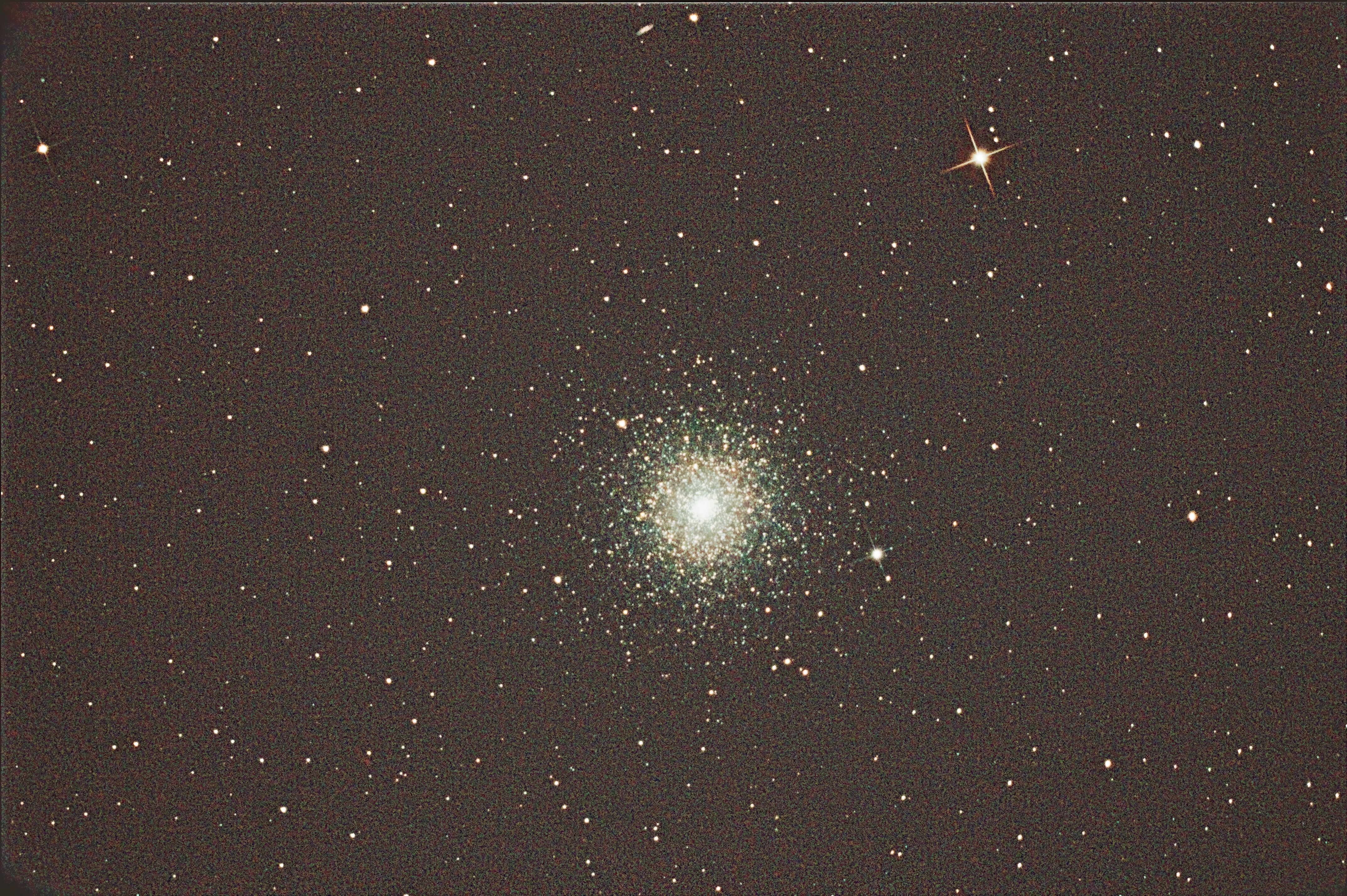 Bevor die Zeit der weißen Nächte den astrofotografischen Ambitionen ein Ende setzt, wollte ich noch einen der prächtigsten Kugelsternhaufen des Nordhimmels auf den C-MOS-Sensor meiner DSLR bannen. Trotz des überwiegend schlechten Wetters hier im Norden hat es doch noch geklappt.