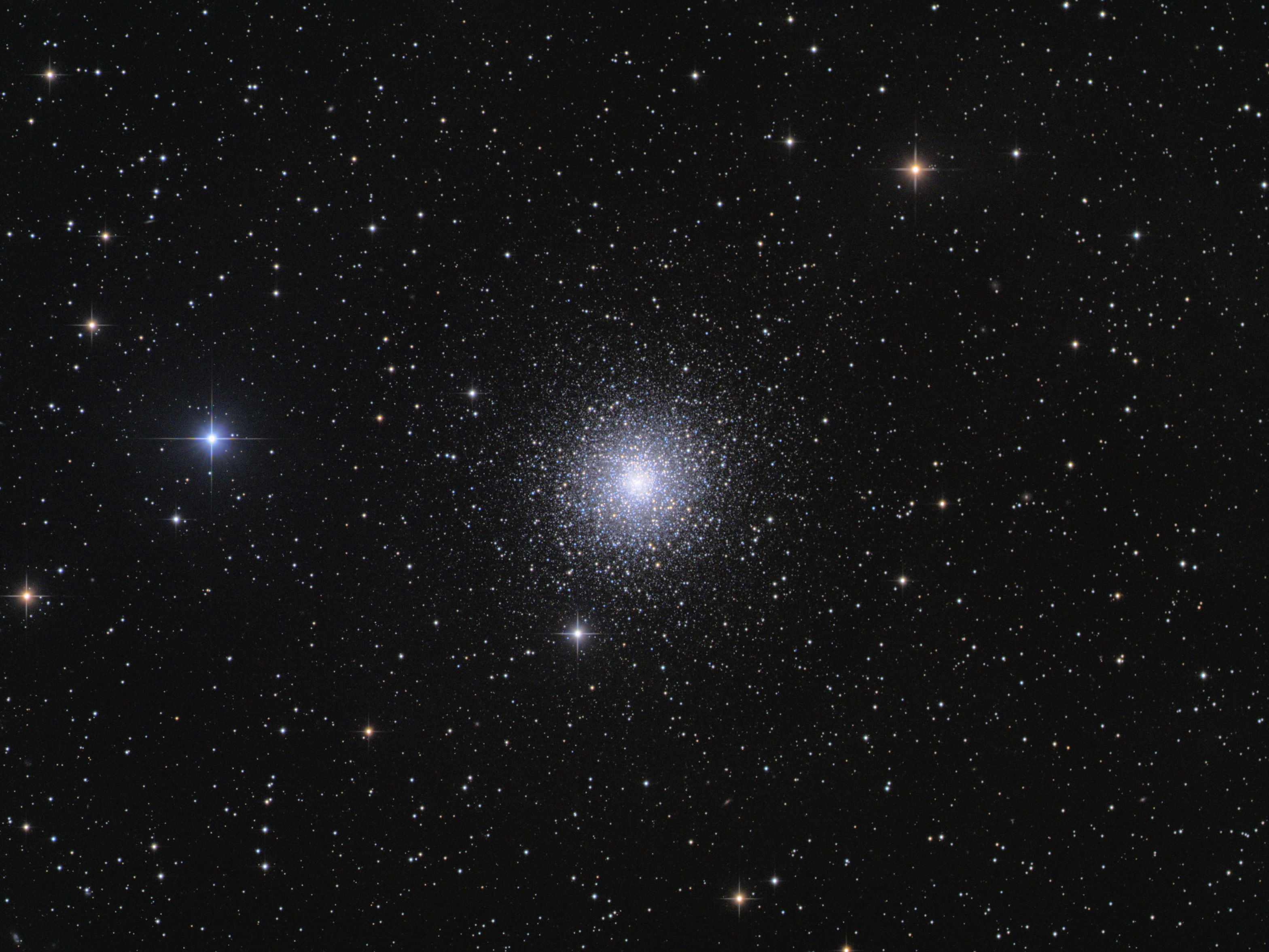 Der Kugelsternhaufen Messier 15 steht im Herbst mit dem Sternbild Pegasus attraktiv für uns am Südhimmel. Sein Zentrum ist sehr konzentriert und kann mit kürzeren Brennweiten kaum aufgelöst werden. Obwohl die Durchsicht am 22. Oktober 2019 eher mäßig war, half die Luftruhe zu einem guten Bild des Kugelsternhaufens. Auffallend sind die vielen kleinen Galaxien im Hintergrund von M 15.