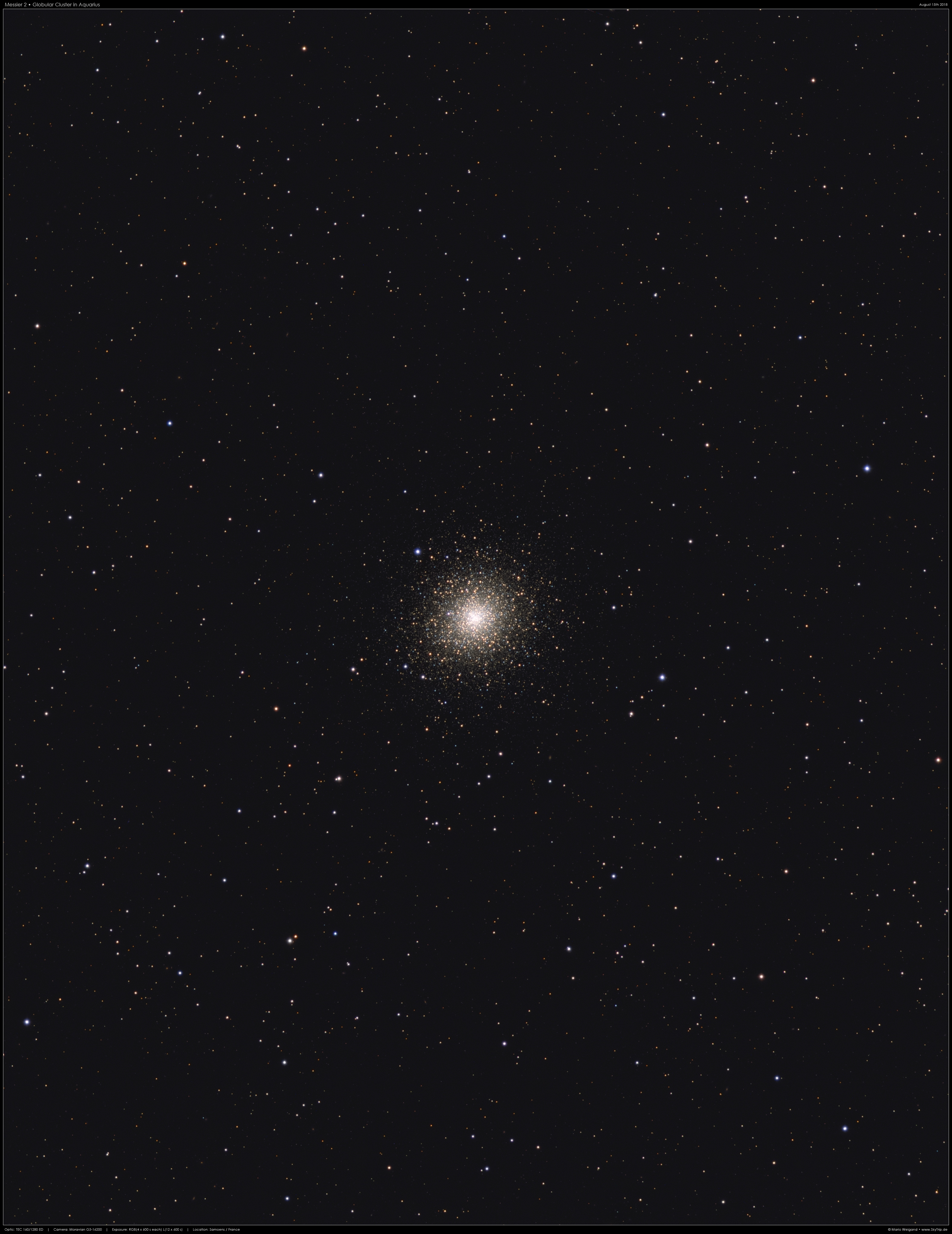 Im nordwestlichen Bereich des Sternbildes Wassermann liegt der Kugelsternhaufen Messier 2 (NGC 7089), der rund 37000 Lichtjahre von uns entfernt ist und 150 Lichtjahre im Durchmesser misst.