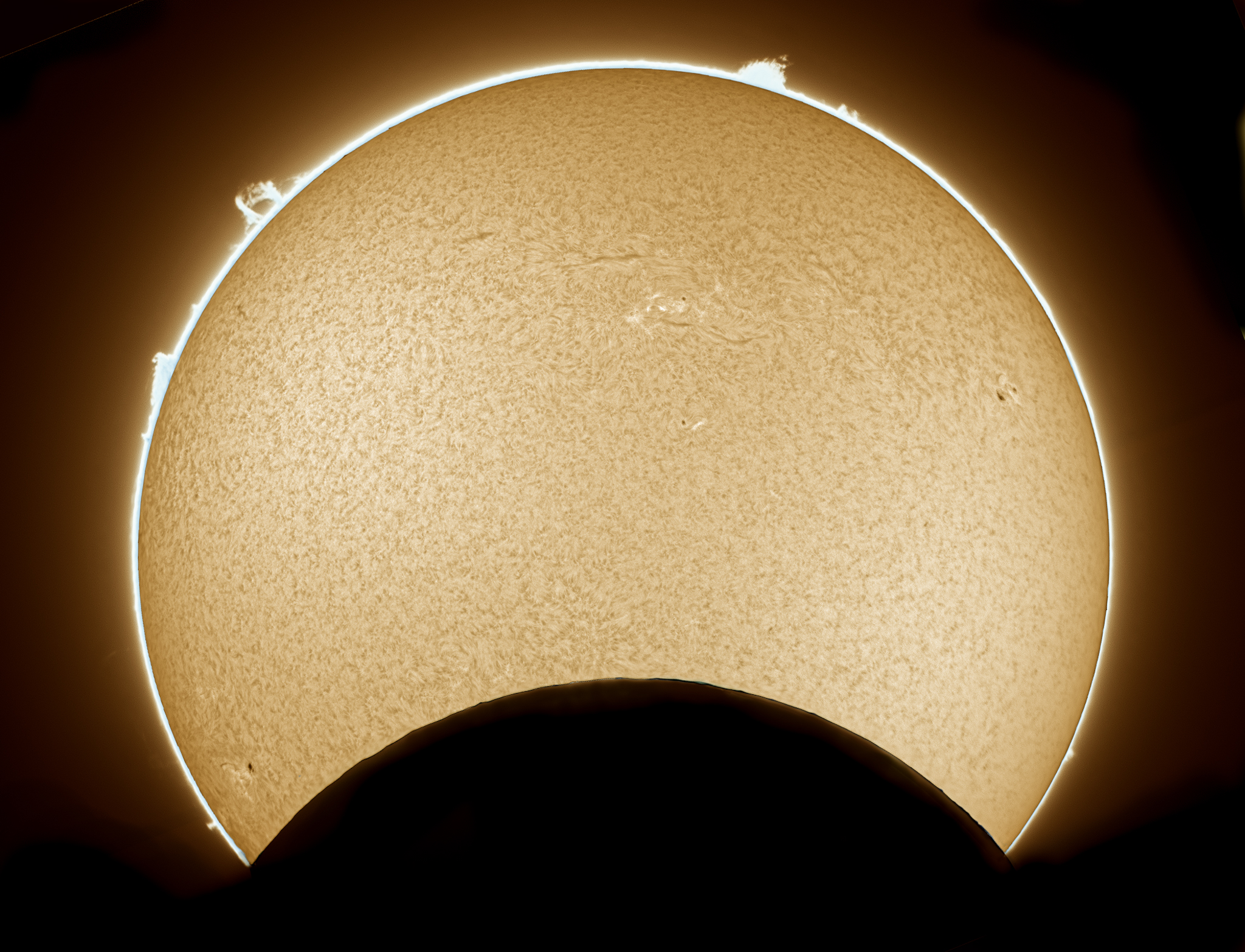 Zur Aufnahme: Ich hatte gedacht bei uns wird’s bewölkt bleiben. Also bin ich nach Westen, Richtung Kärnten gefahren und wär fast in der einzigen Wolke in ganz Österreich hängengeblieben. Schließlich bin ich bei Neumarkt über das Wolken/Nebelmeer gekommen. Aufgenommen mit einem Helios Sonnenteleskop und einer ASI 183MM Kamera