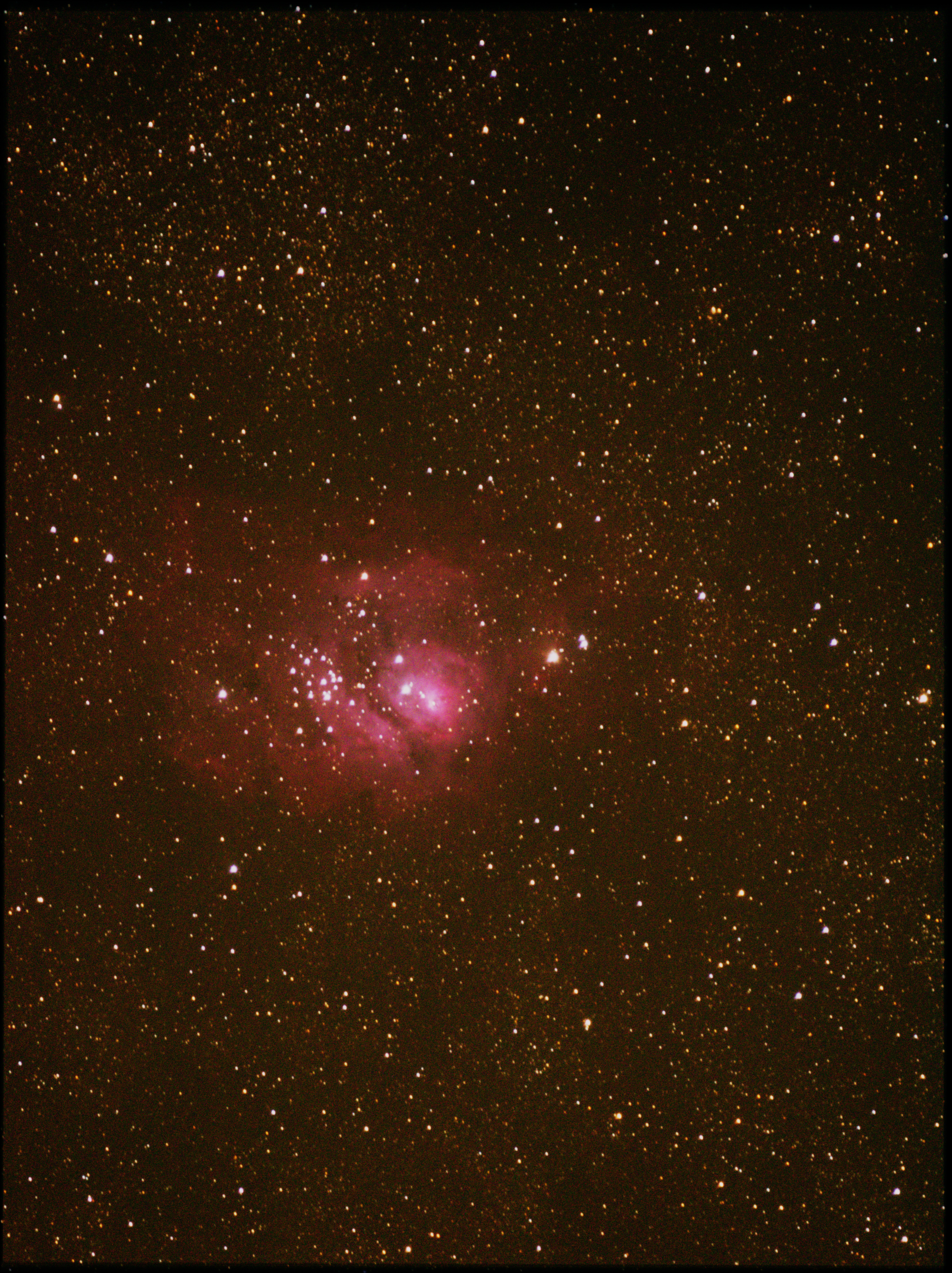 Der Lagunennebel M8 gesehen von meiner Balkonsternwarte in Waldshut. Ein Komposit aus 7 * 4 min Aufnahmen.