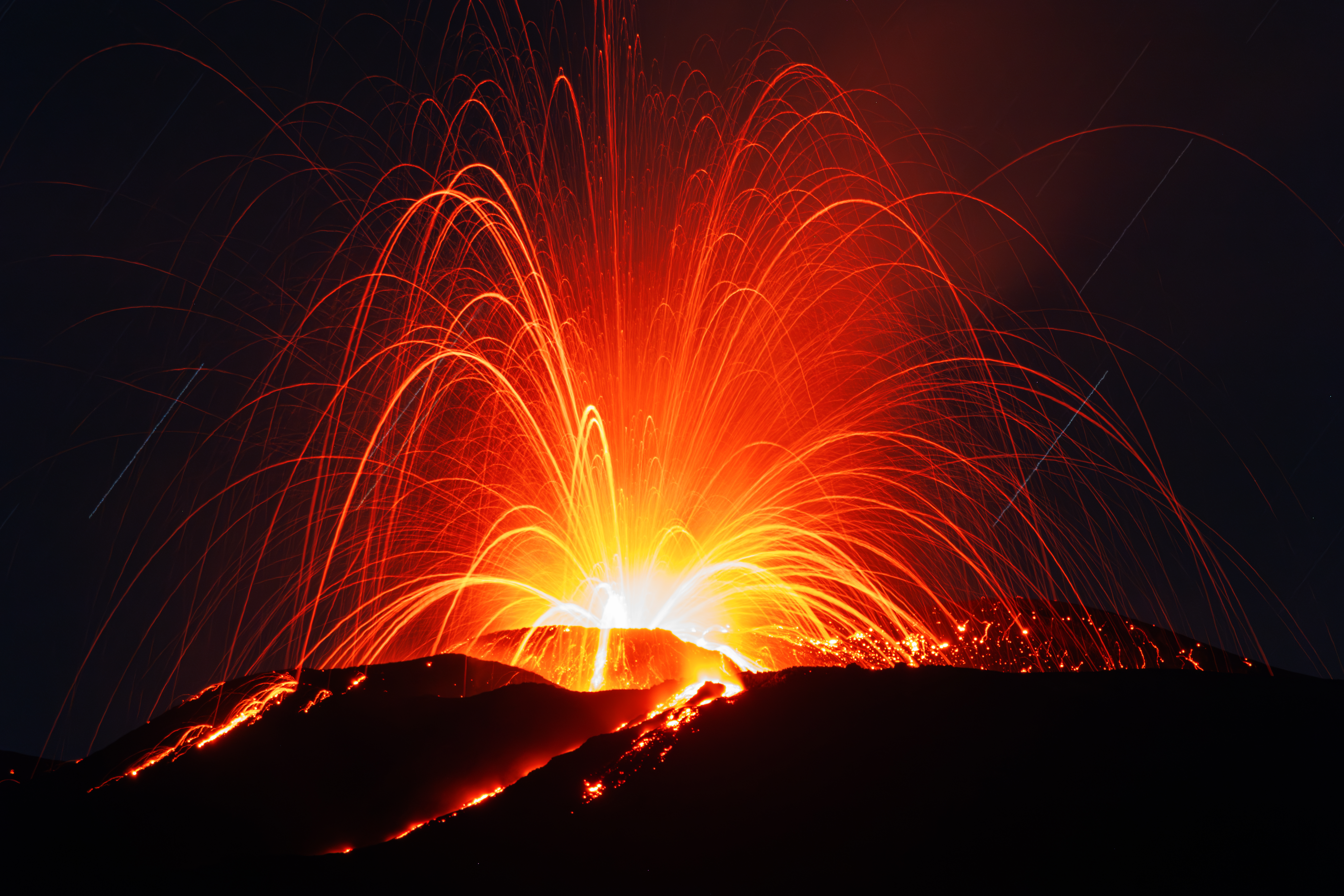 Leserbilder Astronomie: Lava fountain and star trails