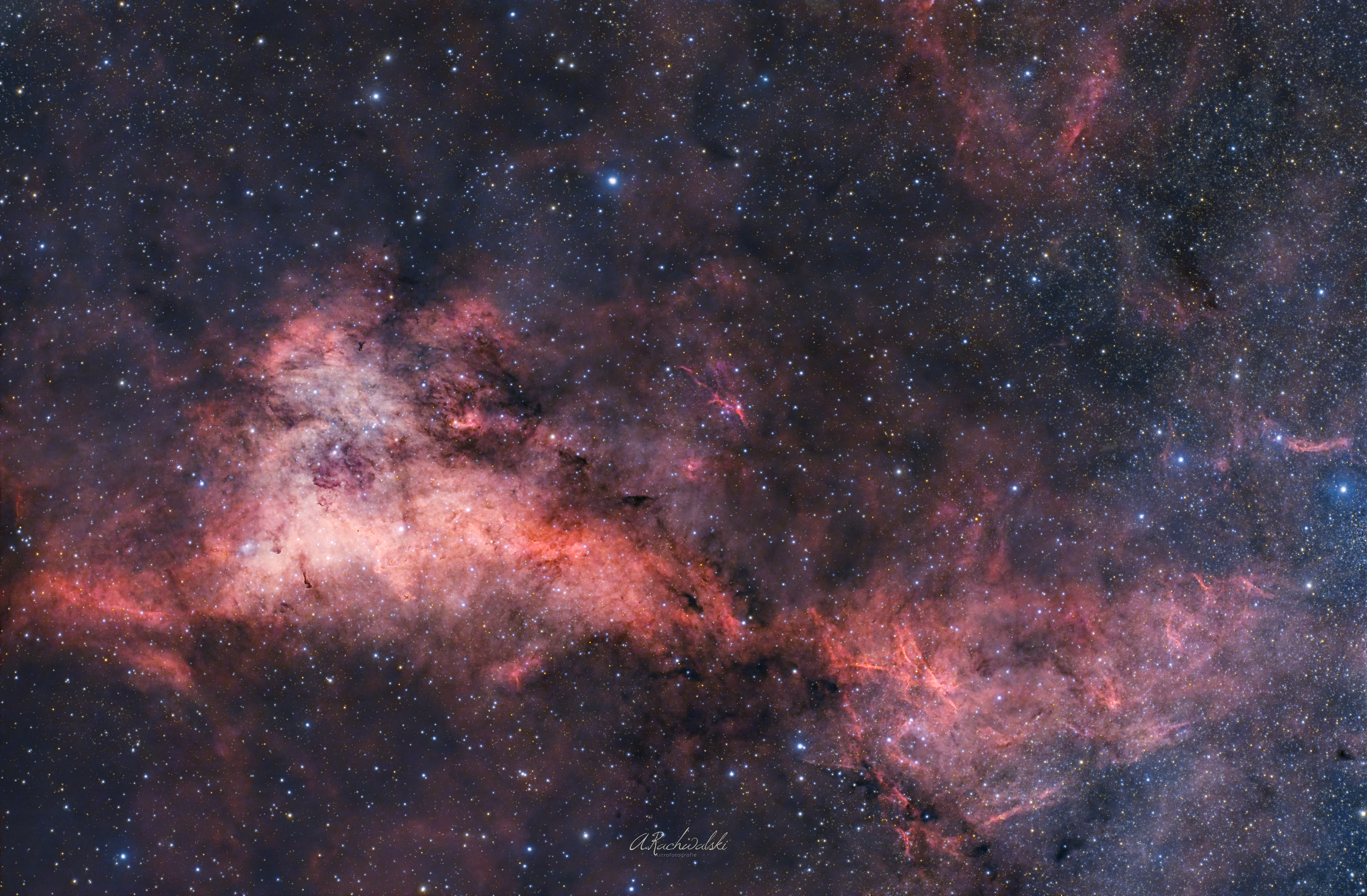 Diese Aufnahme entstand am 14. Juli 2024 mit dem Teleskop Askar 130 qhp und der Kamera ASI 2600 mc sowie dem Quadbandfilter der Firma Antlia. Verarbeitet wurden 47 Aufnahmen je 240 s.