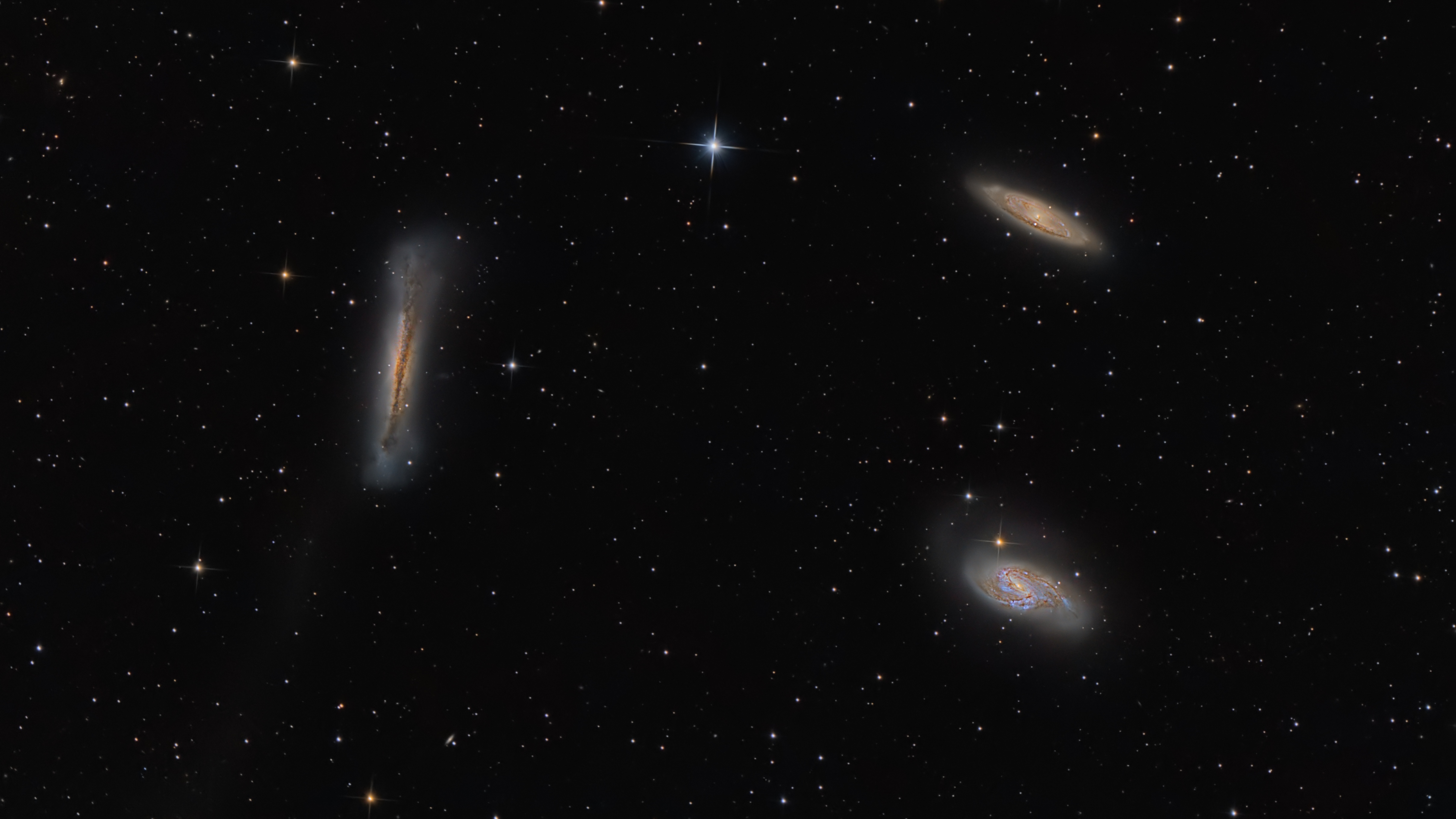 Bei guten Bedingungen konnte ich das Leo Triplett mit M65, M66 und NGC 3628 von meiner Terrasse aus aufnehmen. Zur Zeit steht es ideal für eine lange Belichtungszeit.