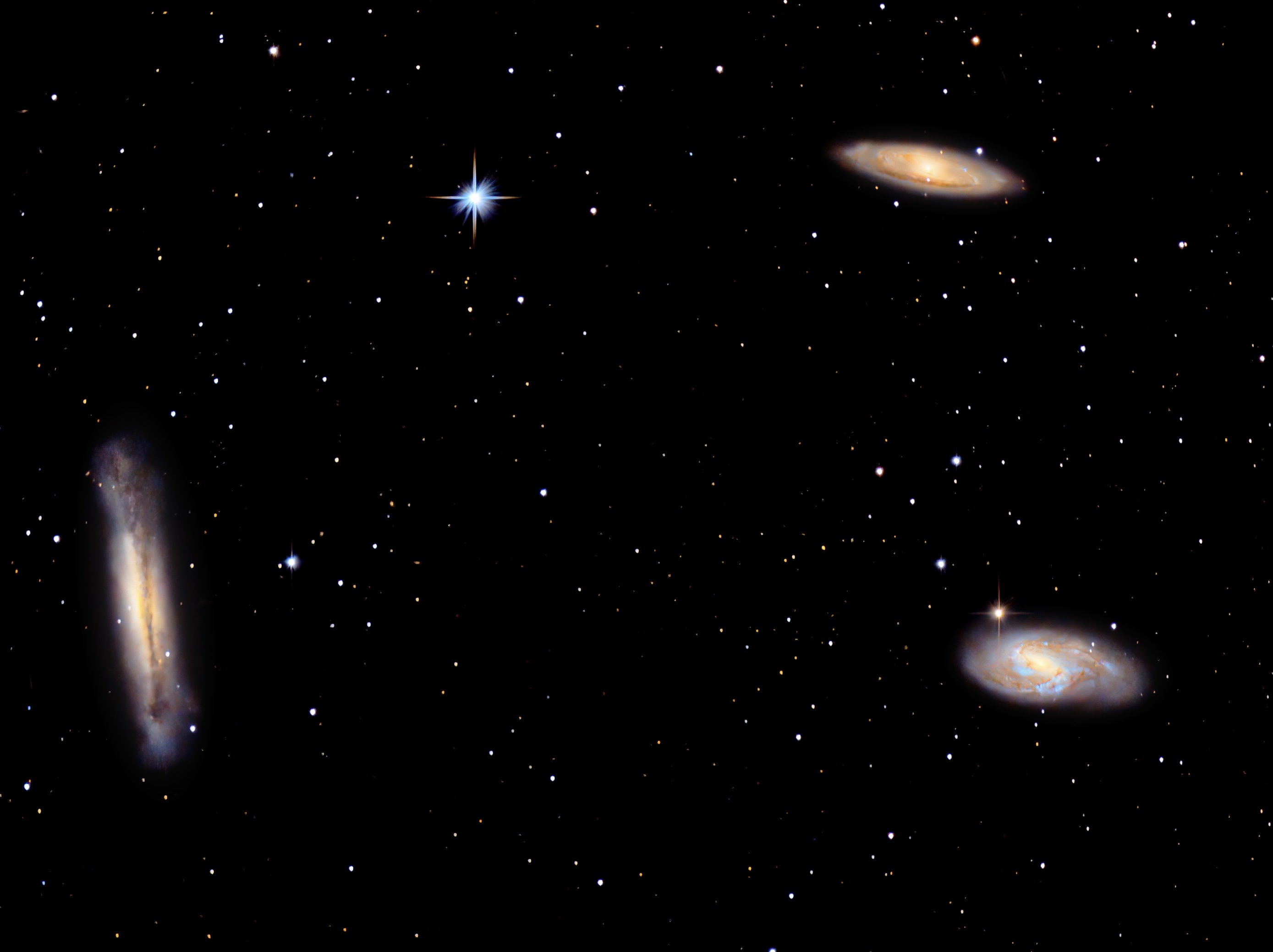 Das Leo-Triplett im Sternbild Löwe besteht aus drei Galaxien M 65, M 66 und NGC 3628. Sie sind ungefähr 65 Millionen Lichtjahre entfernt. Immer wieder eine Perle des ausklingenden Winterhimmels.