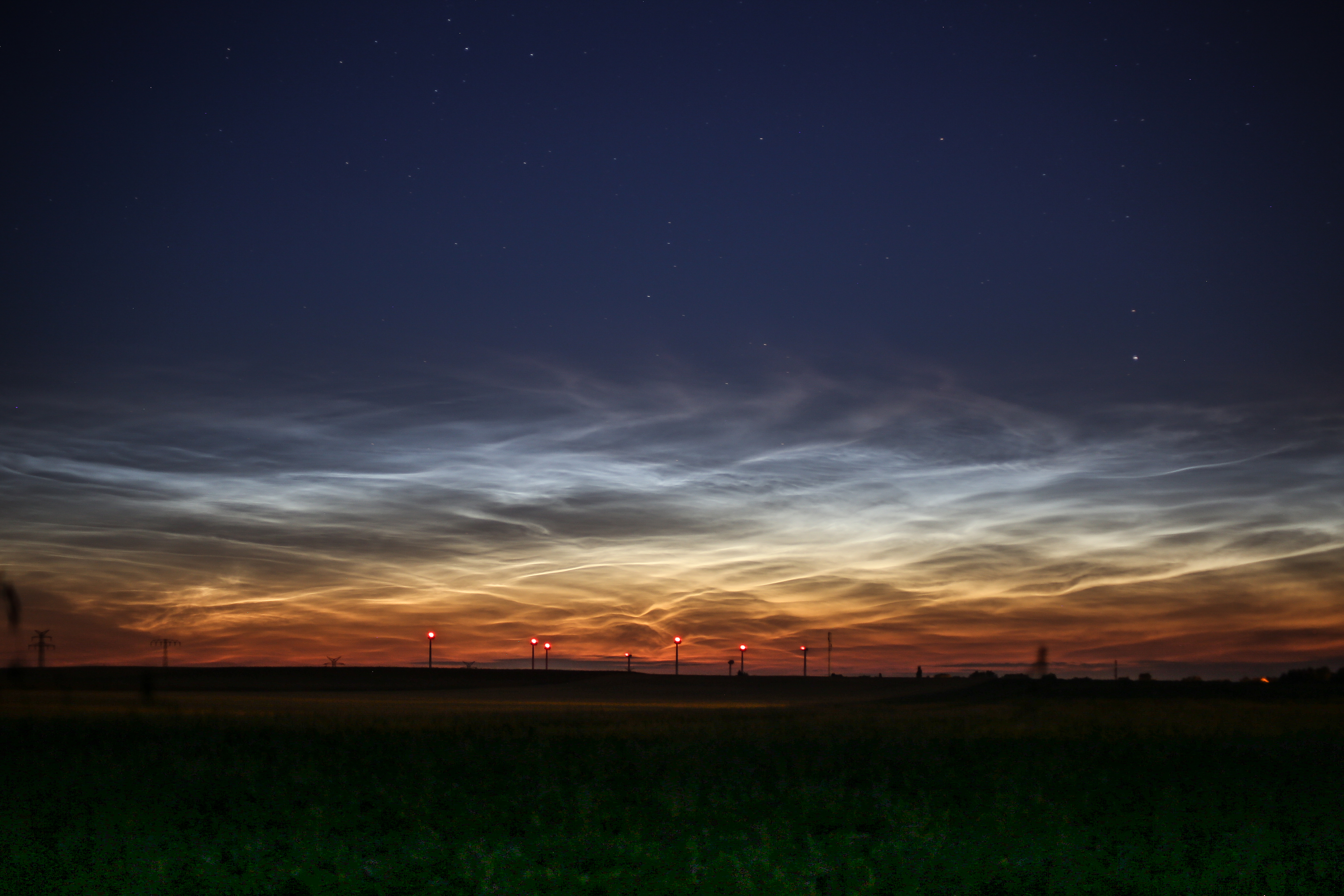 Es ist die Zeit der leuchtenden Nachtwolken. Gestern Abend bestand der Himmel aus einem Flammenmeer an leuchtenden Nachtwolken. Es schien als ob der Himmel brennt.