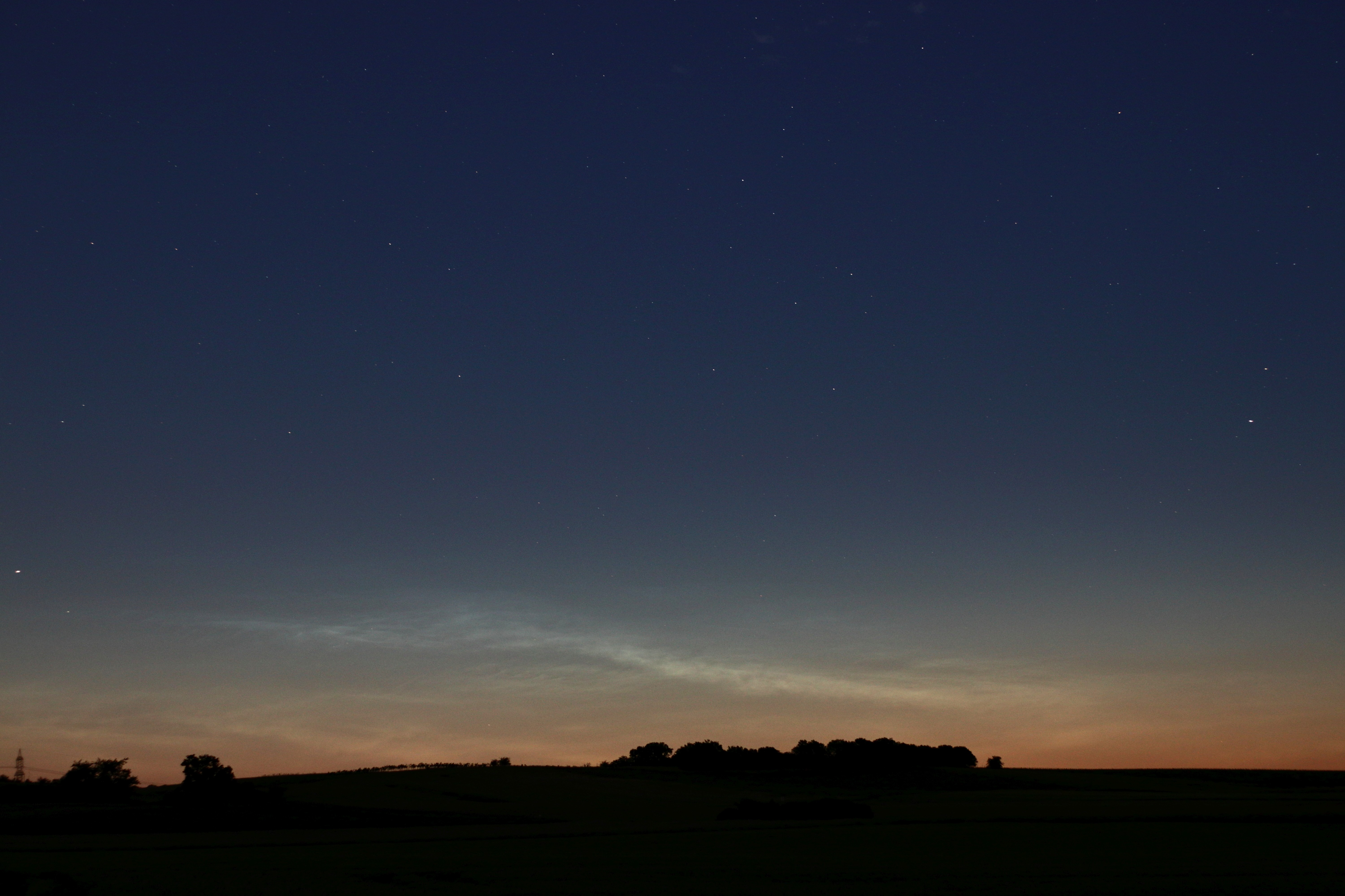 Auch am Nordrand von Wien zeigten sich die leuchtenden Nachtwolken. Ganz links ist Kastor, rechts Beta Aurigae zu sehen.