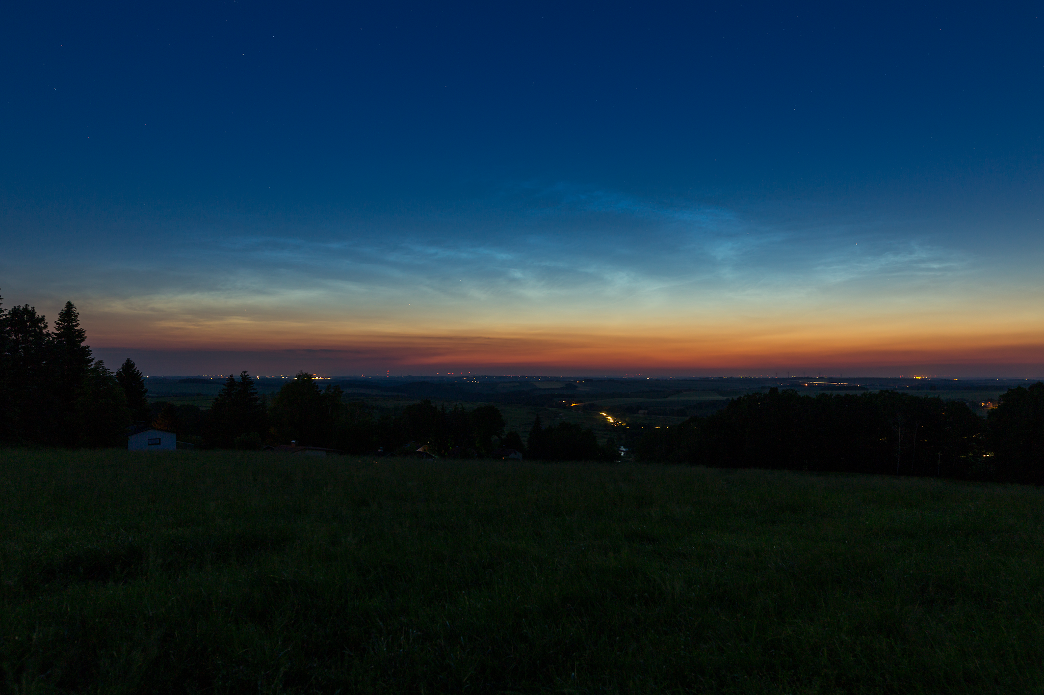 Nach einem gefühlt etwas zähem Start dieses Jahr meine errste Sichtung Leuchtender Nachtwolken am Abend des 18. Juni 2021. Erste zarte NLCs wrden bei -8° Sonnenhöhe neben Kapella sichtbar. Je tiefer die Sonne sank, umso beeindruckender wurden sie. Die Ausdehnung in Azimut war recht groß, bis WNW (ca 290°) zogen sich die westlichsten Ausläufer dahin. Offenbar wird die Saison nun doch recht intensiv, NLCs wurden bereits über Spanien gesichtet!