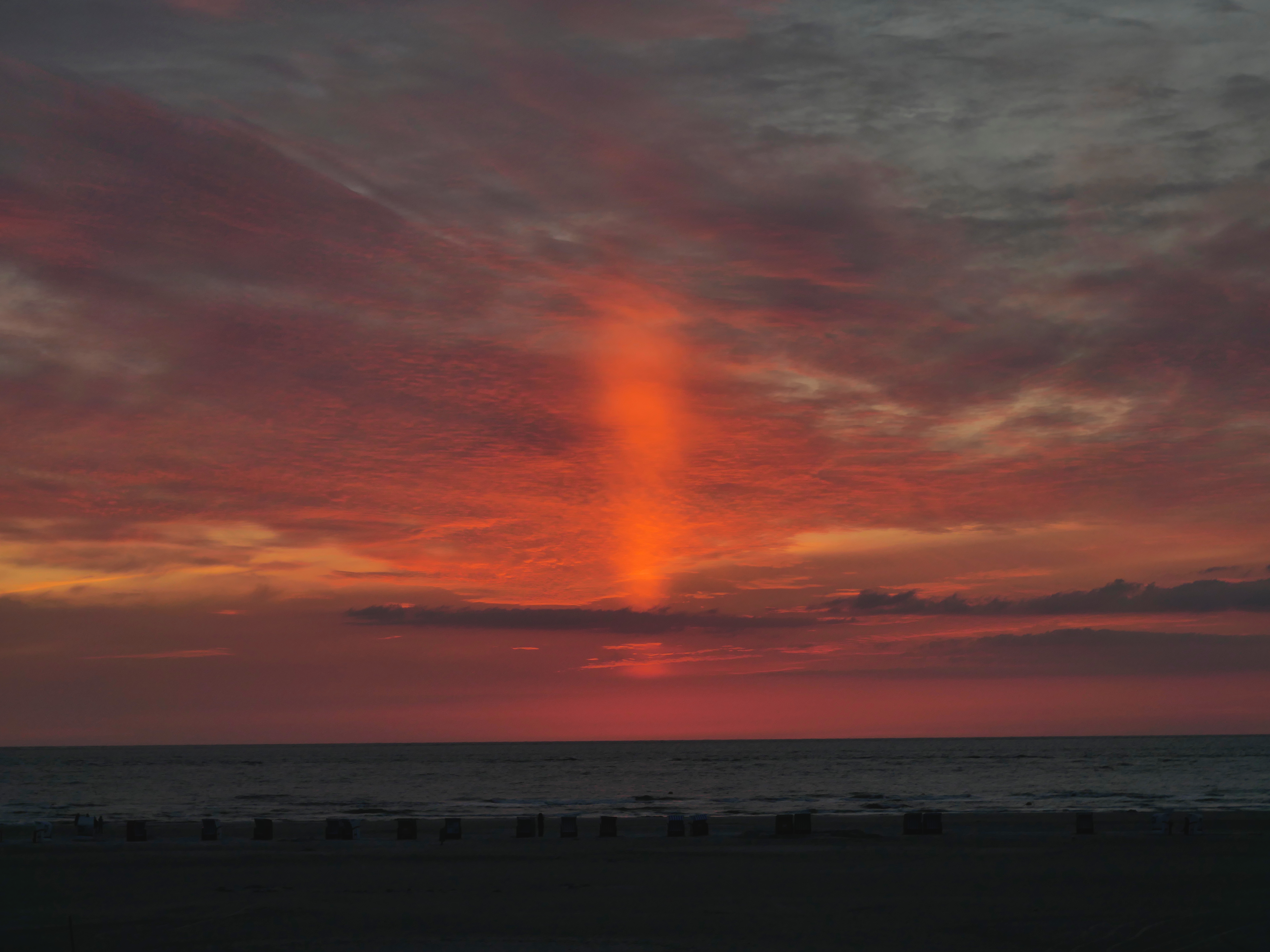 Endlich wieder Urlaub! Und dann als Geschenk der Natur diese wunderschöne Lichtsäule über dem Meer bei Amrum.