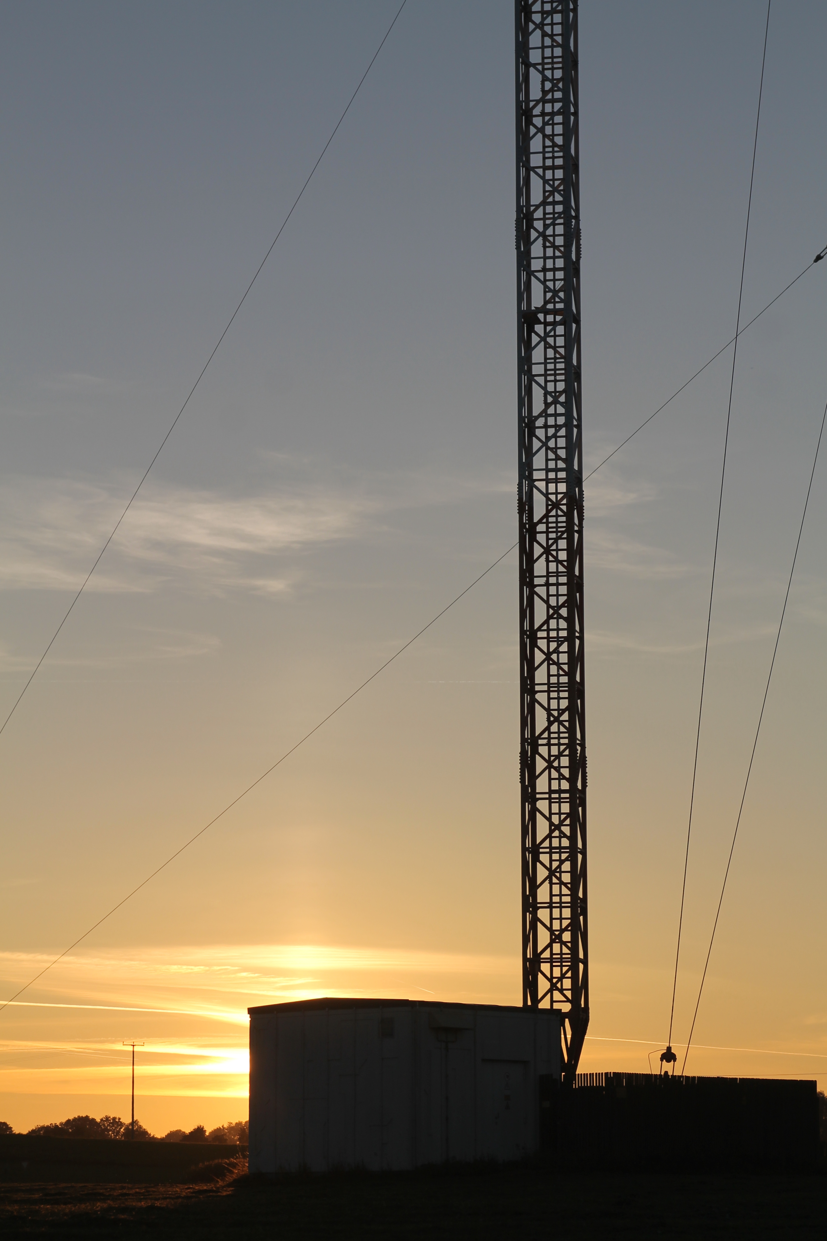 Am Abend des 22.September 2013 konnte ich kurz vor Sonnenuntergang eine Lichtsäule über der Sonne beobachten. Auf diesem Bild ist sie über dem Abstimmhaus des Reflektormasts des Mittelwellensenders Ravensburg-Horgenzell zu sehen, welches die Sonne verdeckt.