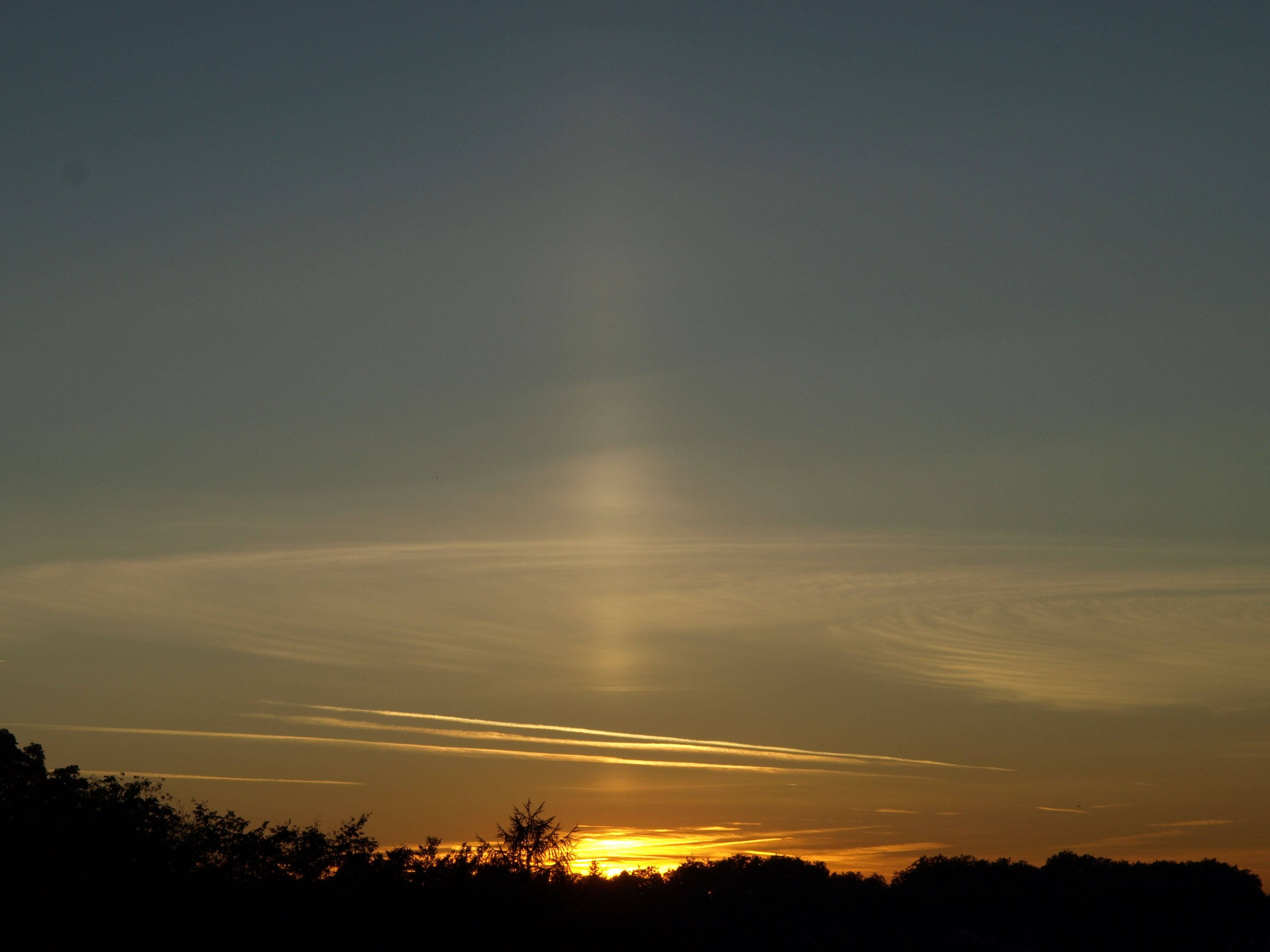 Ein sonniger, warmer Herbsttag wurde gekrönt durch einen farbenprächtigen Sonnenuntergang. Die Lichtsäule war eine ganze Stunde lang zu sehen.