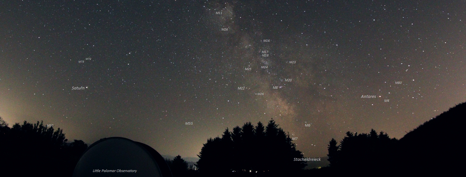 Hier seht ihr meinen Südhorizont mit eingezeichneten Messierobjekten