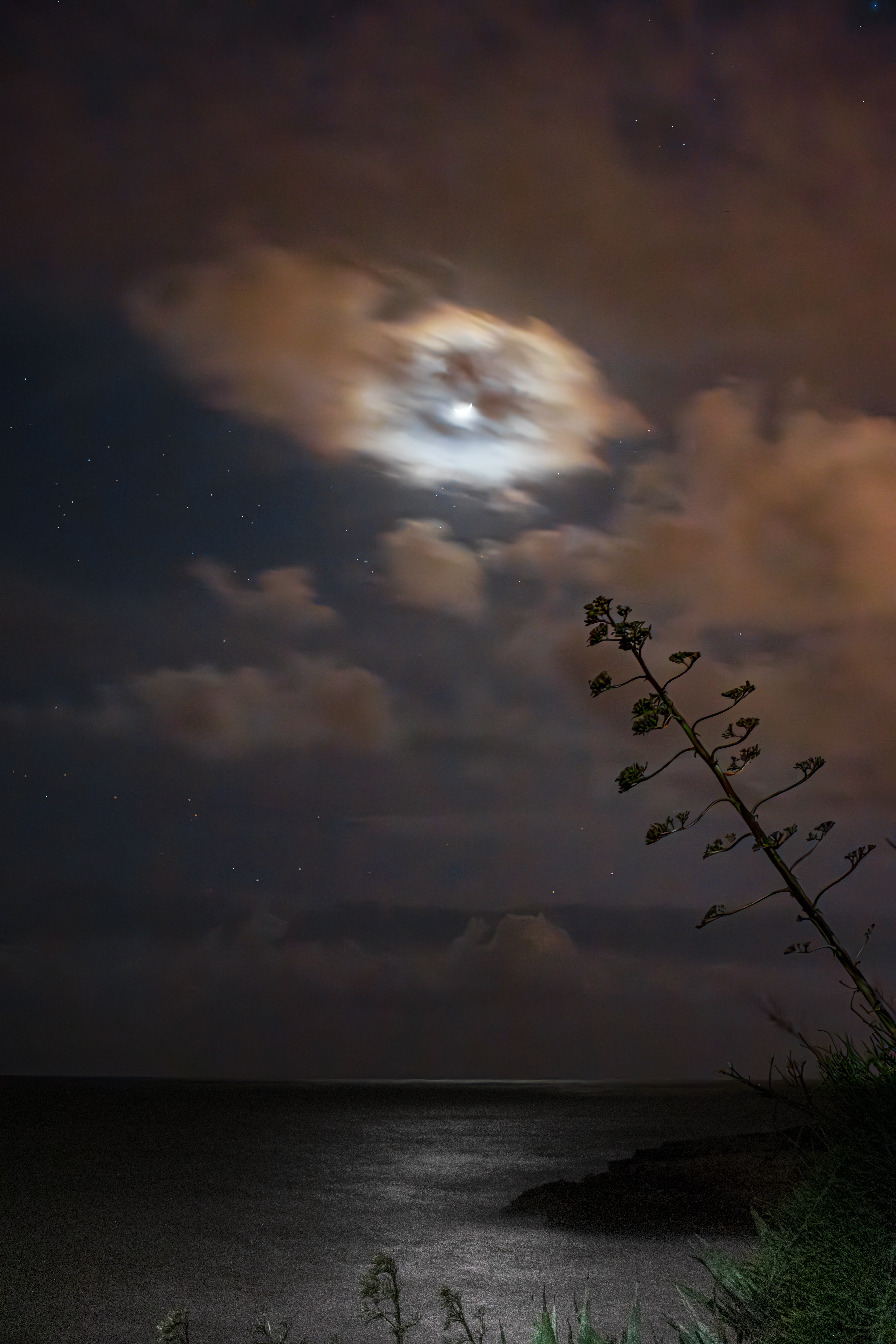 The crescent moon and its crown are reflected in the Mediterranean Sea.