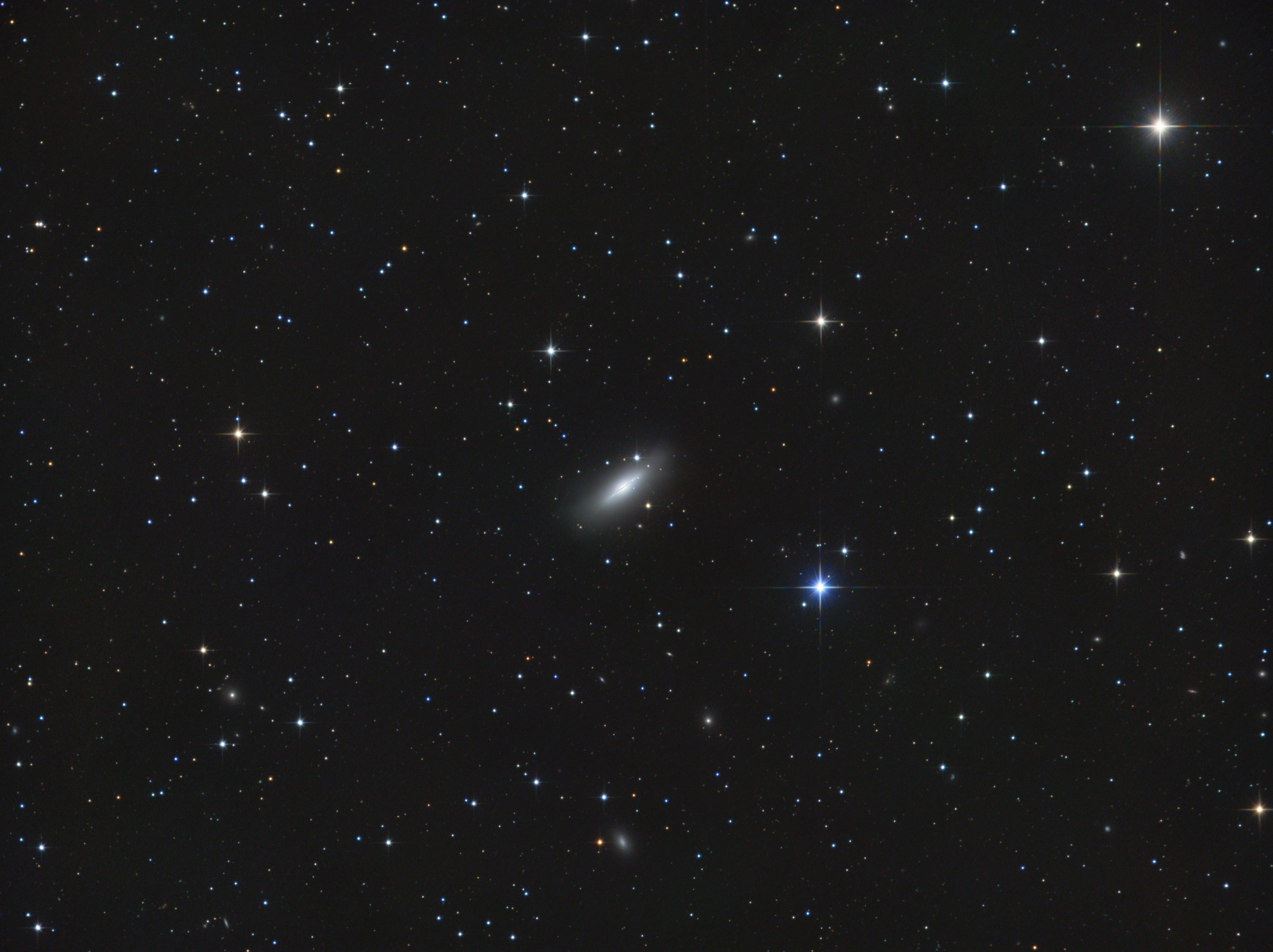 Messier 102 ist eine linsenförmige Galaxie im Sternbild Drache. Sie gehört zum Typ SO und wird auch als Spindelgalaxie bezeichnet. Sie ist rund 40 Millionen Lichtjahre entfernt und hat eine Größe von 6,5' x 3;1'. Weitere Informationen und Bilder: http://galaxyphoto.de/de/m102-de/