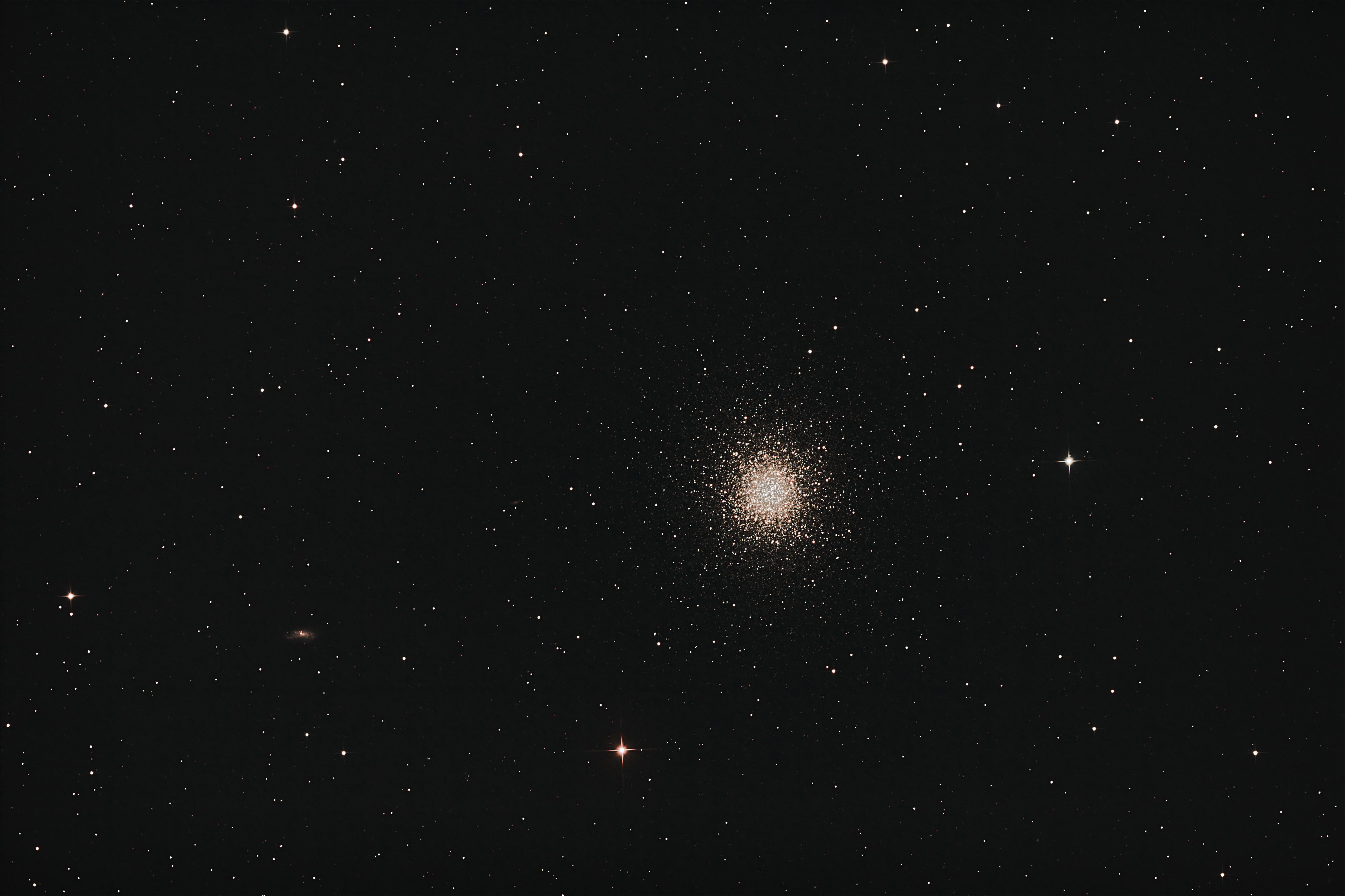 Auf dem Bild ist der Kugelsternhaufen M13 zu sehen. Zusätzlich konnte ich überraschend im Hintergrund viele Galaxien entdecken die jetzt für mich mit diesem lichtstarken 10"-Newton-Teleskop mit f/4-Öffnungsverhältnis erreichbar waren.