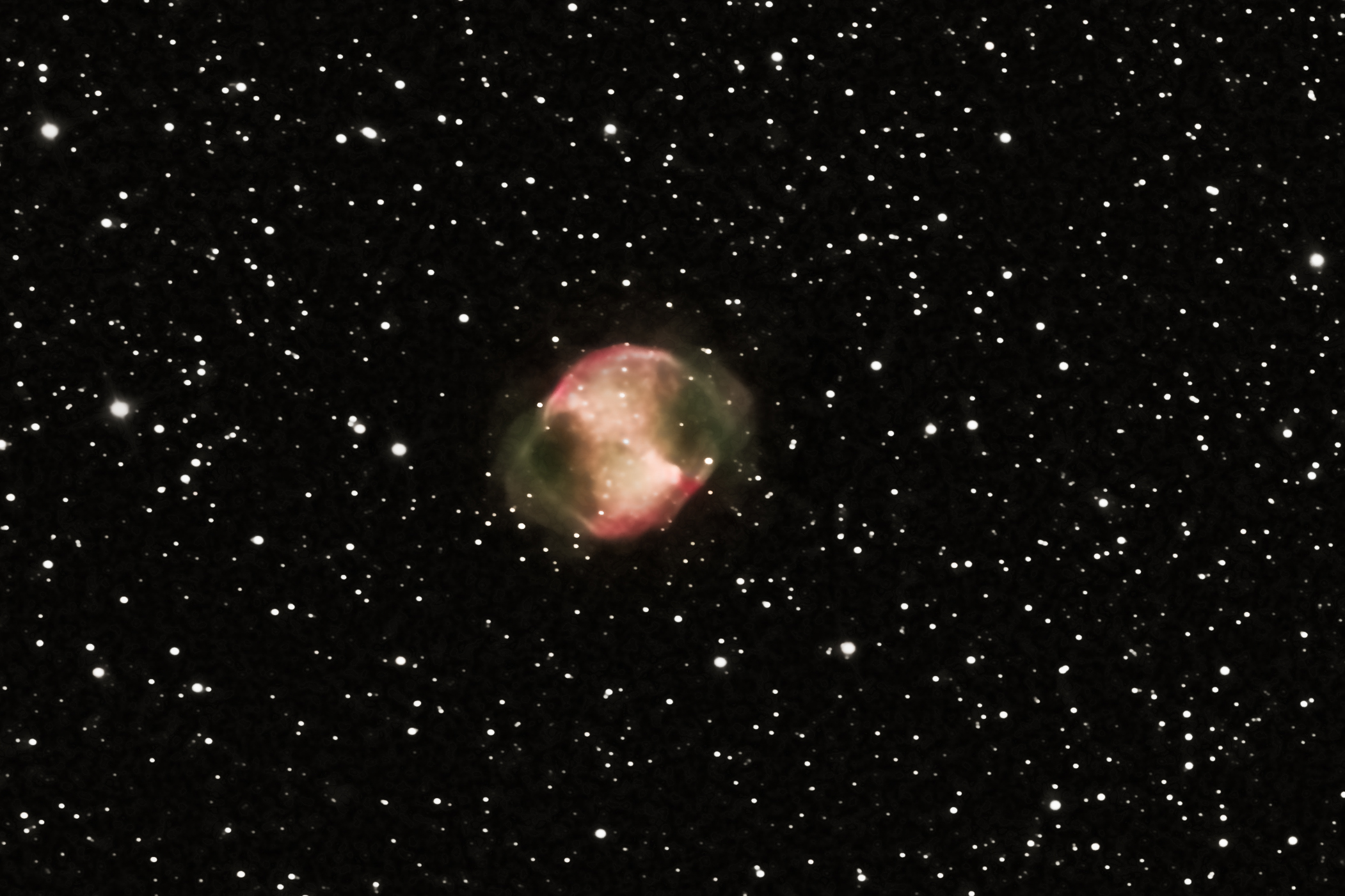 Dieser planetarische Nebel fiel mir am 20. 06. buchstäblich in meinen Garten. Funkelnd wie ein Edelstein. So klar und dunkel war es bei mir noch nie.