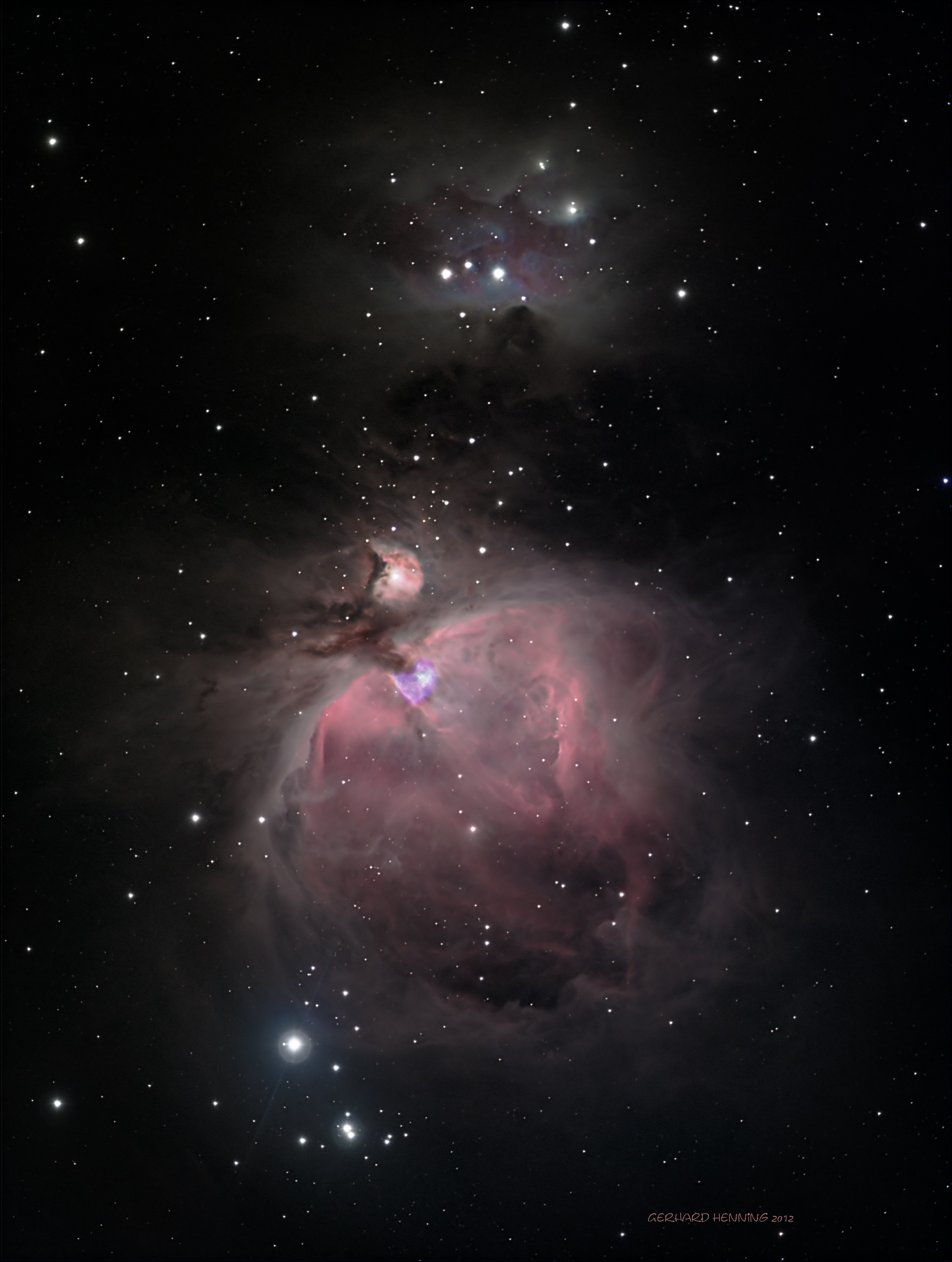 Sehr helles Objekt unterhalb der Gürtelsterne des Orions. Ein Sternentstehungsareal mit hoher Emmisionstrahlung von ionisiertem Wasserstoff.