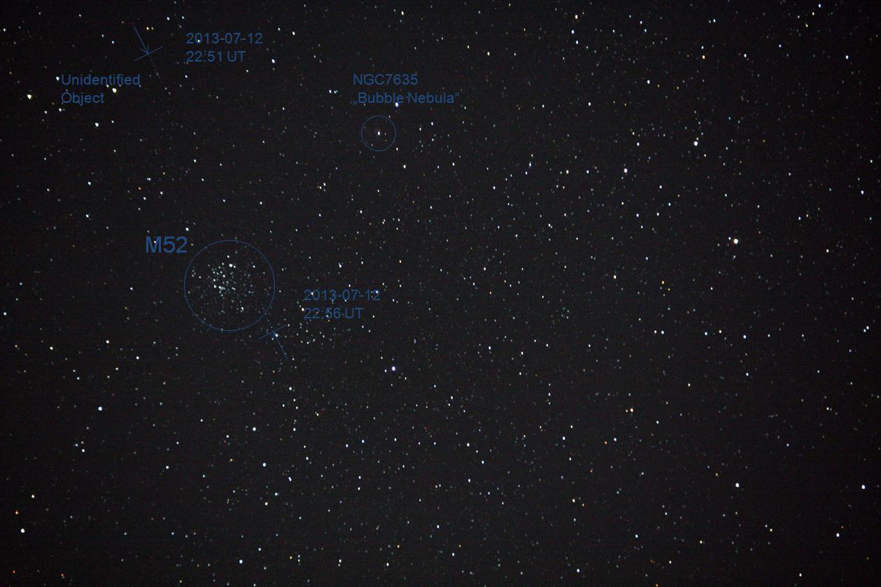 Das sich südlich an M 52 schnell vorbei bewegende Objekt ist nicht identifiziert.