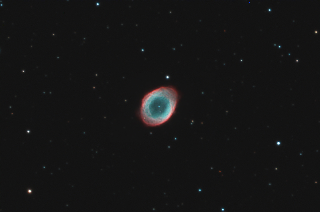 Um den winzigen Ringnebel mit ein paar Details ablichten zu können, bedarf es schon ein wenig Brennweite. In diesem Fall habe ich das mit 2541 mm bewerkstelligt.