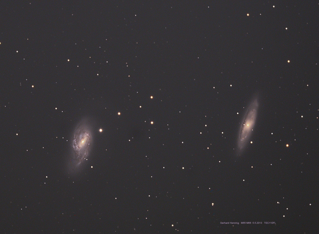 M 65 und M 66 wurden 1780 entdeckt und sind beide ca. 90 000 Lichtjahre ausgedehnt, beide im Sternbild Löwe zu finden.