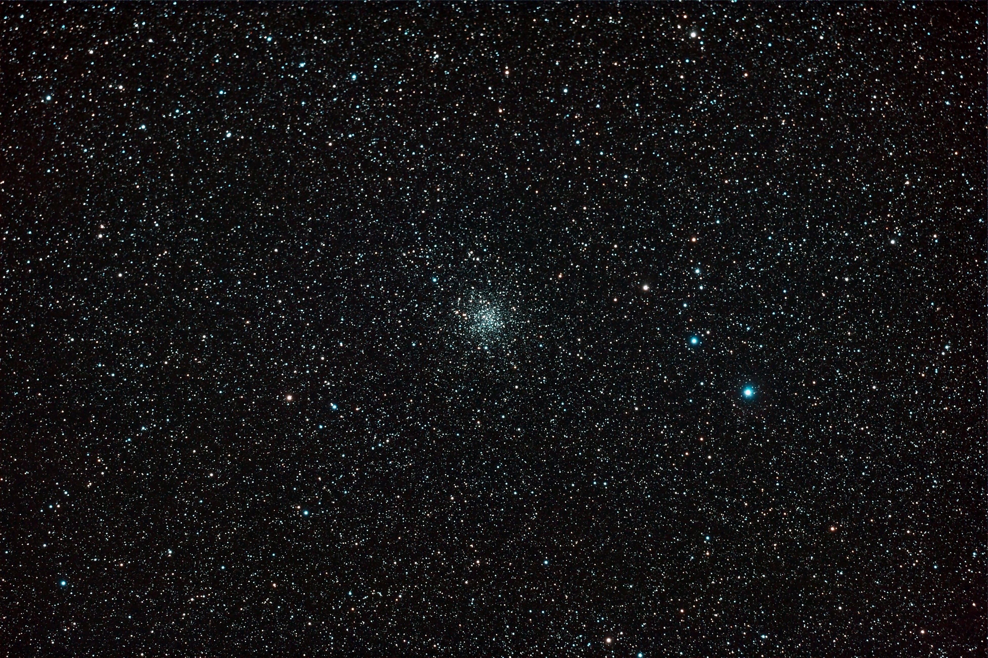 Kugelsternhaufen im Sternenmeer der Milchstraße - zwei Aufnahmen mit je 10 Minuten und vier mit je fünf Minuten Belichtungszeit bei 1600 ASA überlagert.
