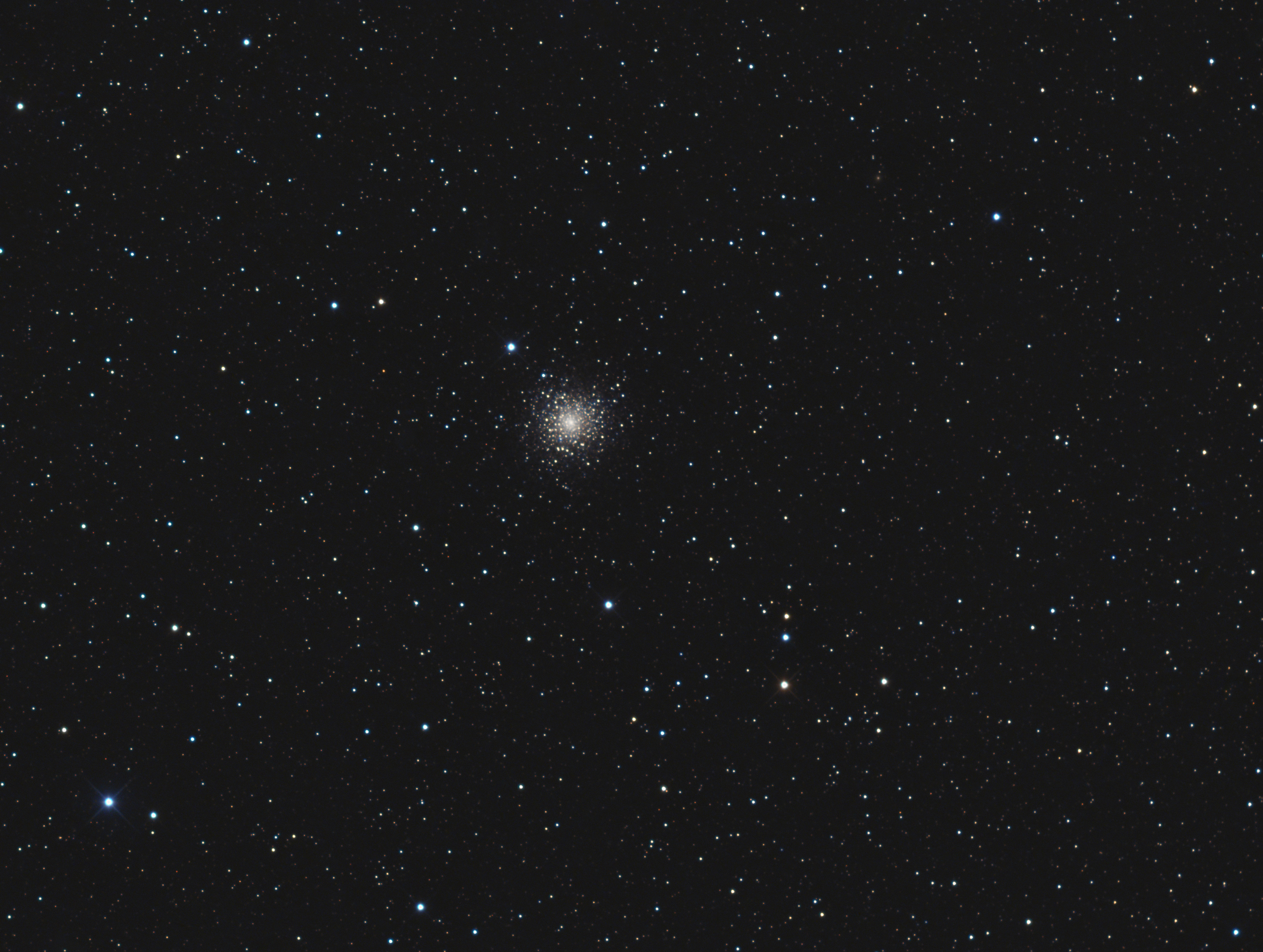 M 80 oder NGC 6093 ist ein Kugelsternhaufen, der von Antares ausgehend relativ leicht zu finden ist. Wegen seiner südlichen Deklination von fast -23 Grad ist er fotografisch ein nicht leichtes Objekt. Etwa 90 Lichtjahre werden als Durchmesser und 33000 Lichtjahre für seine Entfernung angegeben. M 80 enthält eine große Zahl an heißen blauen Sternen, die normalerweise eher in Sternentstehungsregionen zu finden sind.
