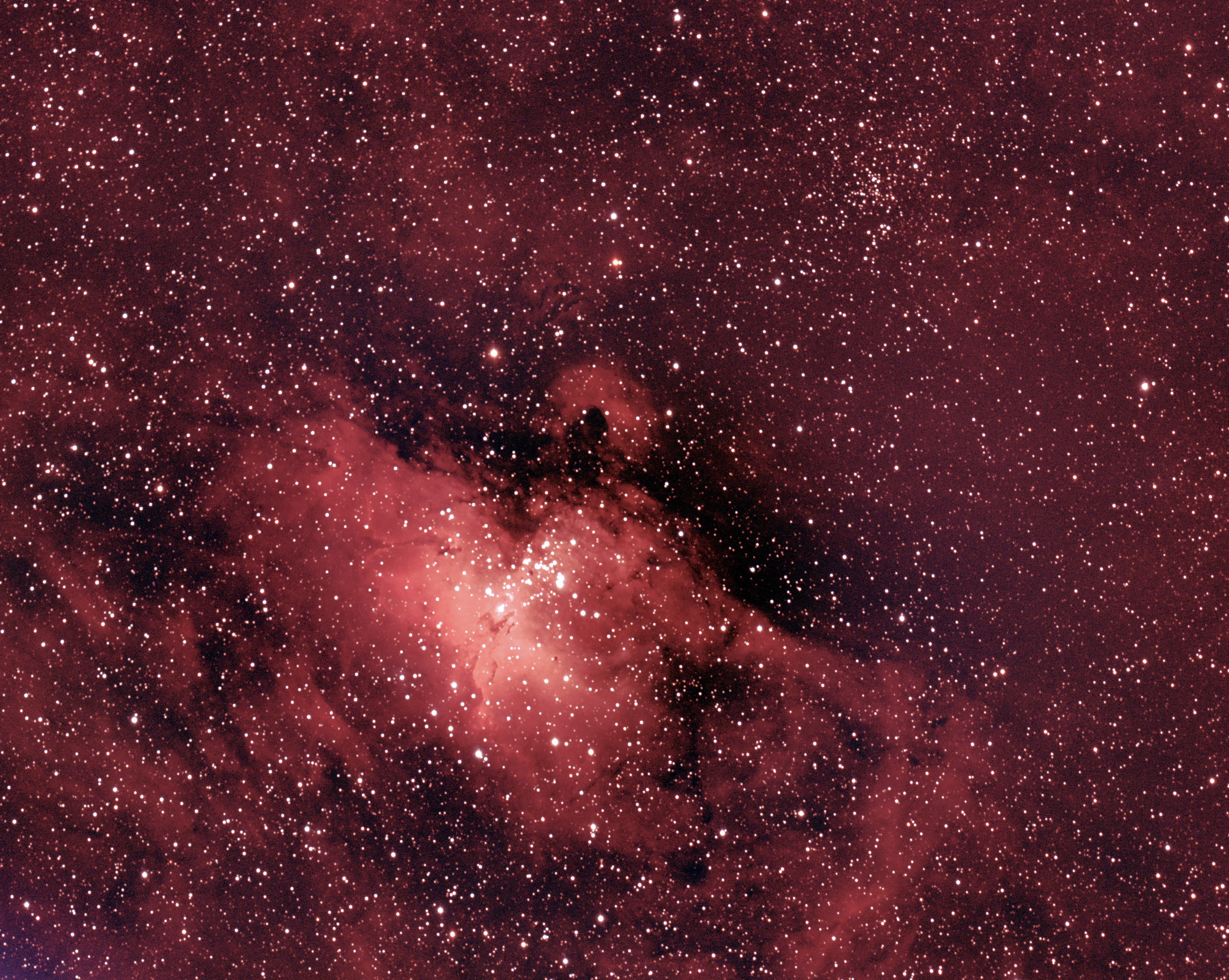 In meinem Garten gibt es eine schöne Lücke in der umliegenden Bebauung, in der man bis tief in den Süden schauen kann. Grund genug, mich trotz hellem Mondschein an Messier 16 heranzuwagen. Hilfreich ist dabei mein Hyperstaransatz an meinem Celestron Edge 11HD mit Blende 2.0. Und ein L-Enhance-Filter.