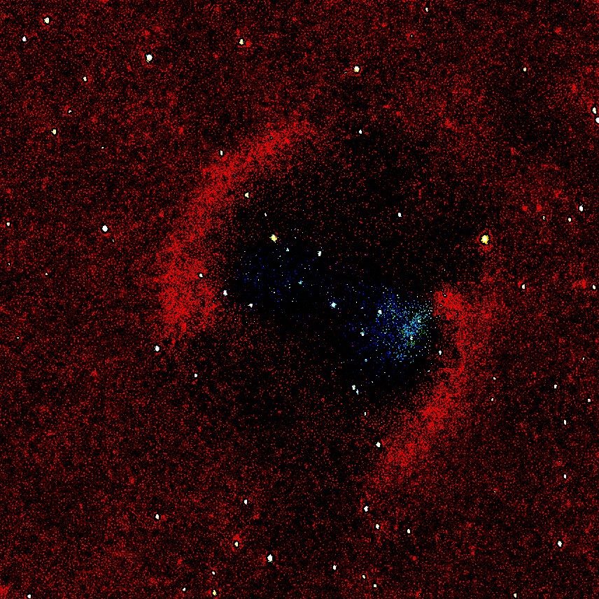 M27 mal anders. Verfremdung des eigentlichen Nebels zur Herausarbeitung der relativ scharf begrenzten Ränder der Hantel.