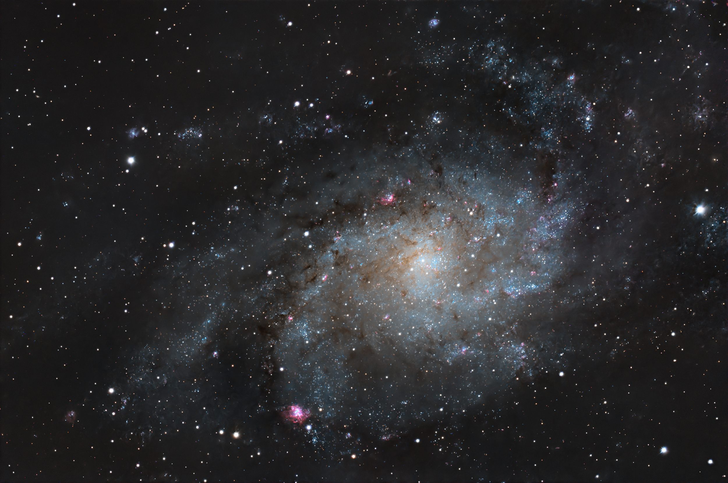Hier dann noch die normale Version der Triangulum-Galaxie, also mit all ihren jungen, blauen Sternen in den Spiralarmen, ohne auf NGC 604 speziell zu schauen.