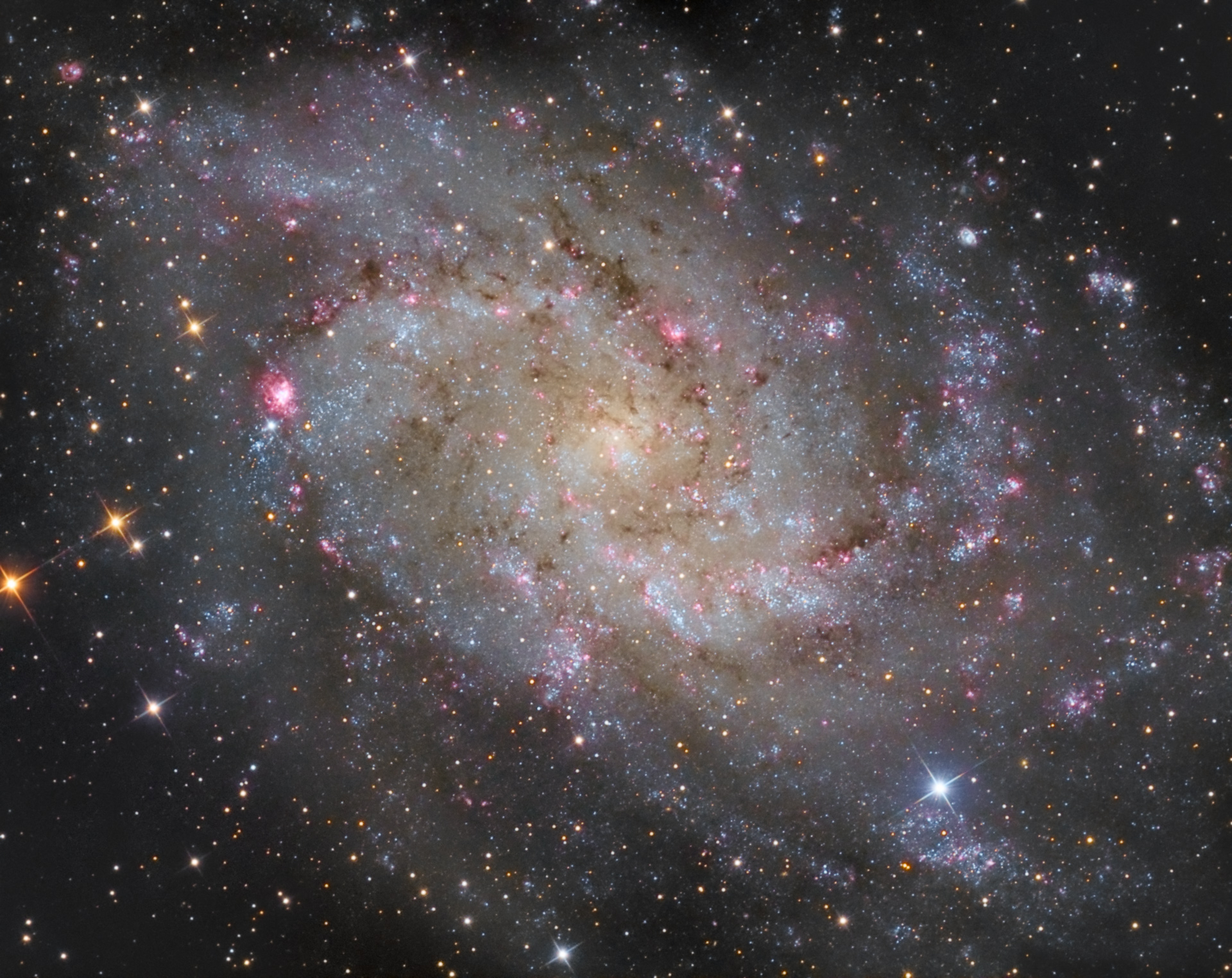 Messier 33 (M33), Dreiecksnebel, oder auch als Dreiecksgalaxie bezeichnet, ist eine Spiralgalaxie mit einem Durchmesser von ca. 60.000 Lj. und der Gesamthelligkeit von 5,7 mag im Sternbild Dreieck. Damit ist sie nach dem Andromedanebel die zweithellste Spiralgalaxie am Nachthimmel und eine der uns nächstgelegensten. Allerdings verteilt sich ihre Helligkeit auf eine größere Fläche, sodass sie unter normalen Bedingungen nicht mit bloßem Auge, sondern allenfalls im Feldstecher als schwacher nebliger Fleck sichtbar ist.